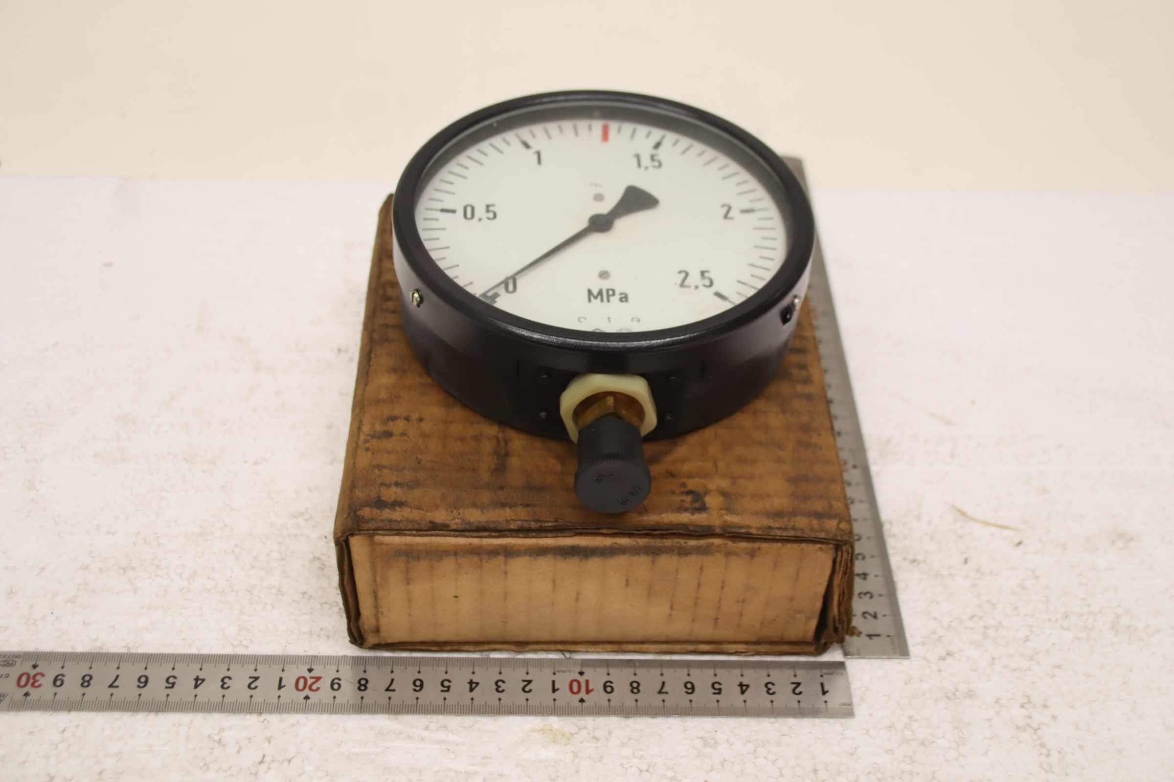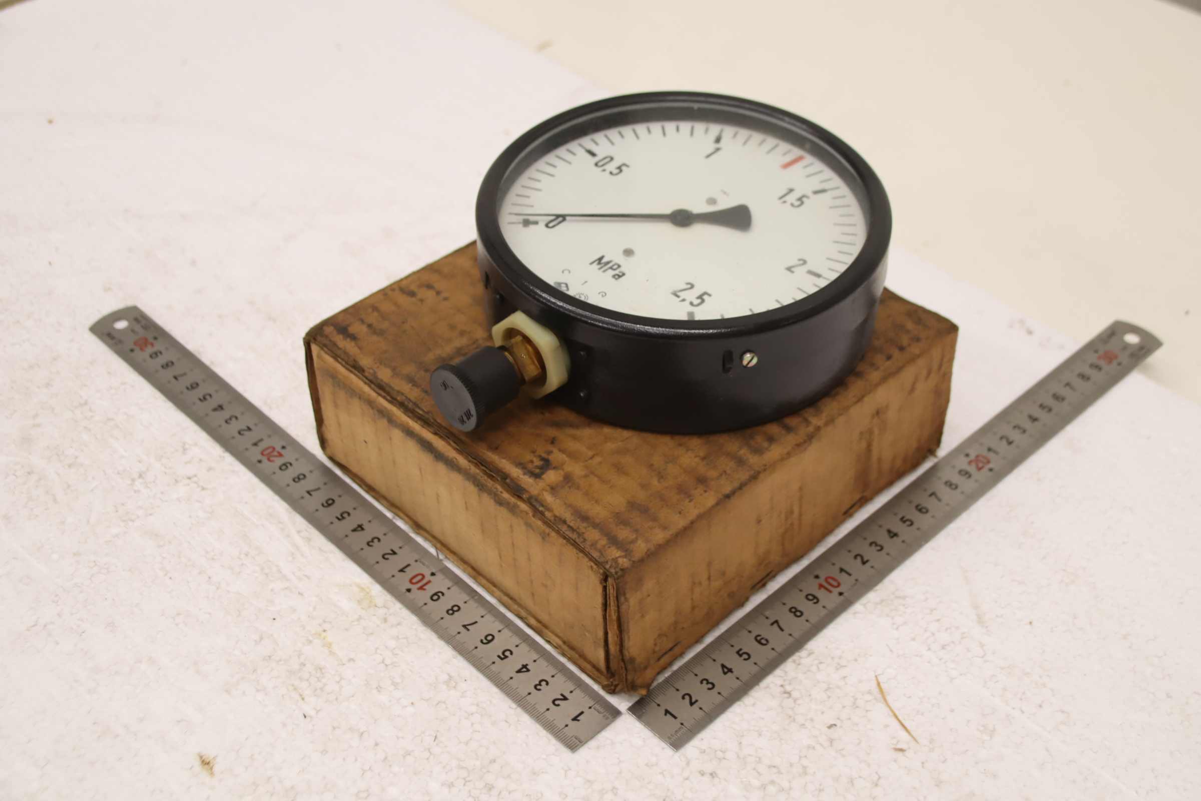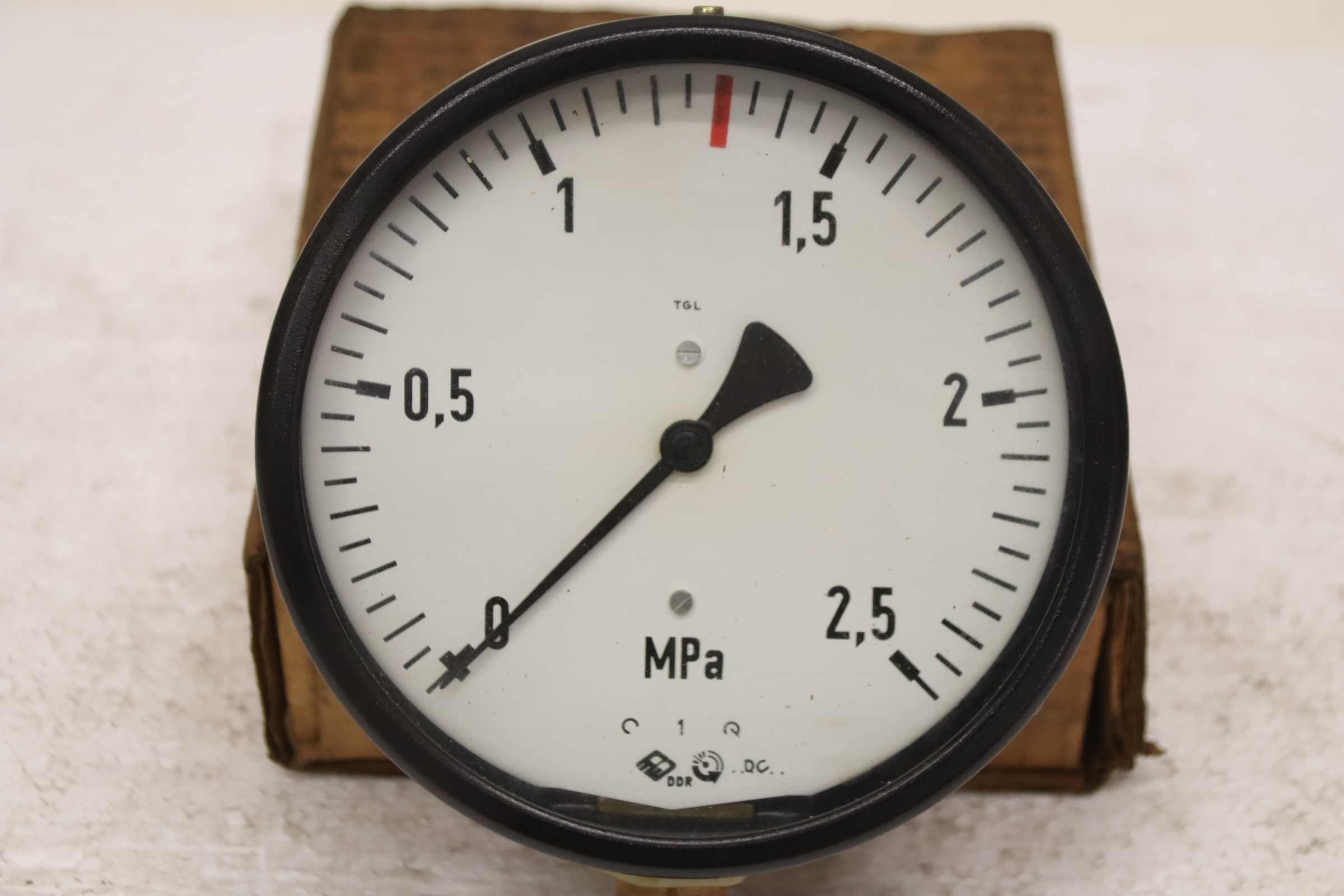 Manometer, Prüfmanometer, Druckmessgerät mit Rohrfeder, Druck-Temperaturmesstechnik, Rohrfedermanometer, Drucktester, Druckprüfer-Hersteller: TGL, Manometer 0 - 25 bar / 0-2,5 MPa unbenutzt Ovp-Typ: Ø 150 mm-Anzahl: 2x Manometer vorhanden-Preis: pro Stück-Abmessung Karton: 195/185/H70 mm-Gewicht: 1,0 kg/St.