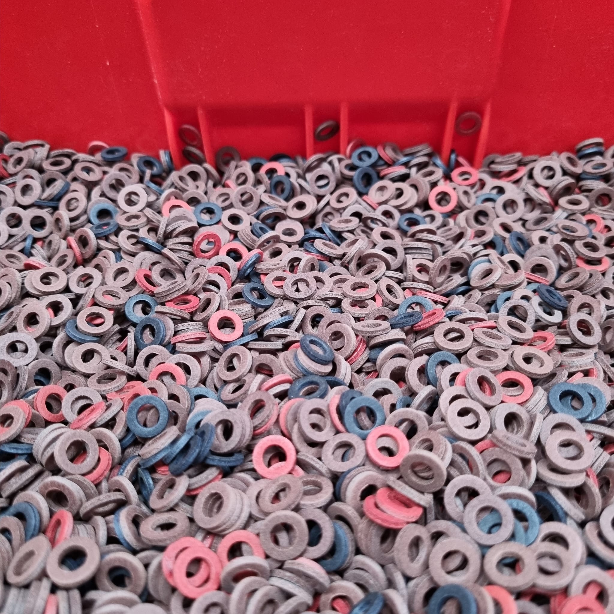 Vulkanfiber-DichtringePAGUSØ 5,2 / 8,9 x 1,5 mmInnendurchmesser: Ø 5,2 mmAußendurchmesser: Ø 8,9 mmMaterialstärke: 1,5 mmMenge: 1,0 kgAnzahl: ca. 14000 StückNeu !Abmessungen ( Verpackung ): 260 x 220 x 160 mm