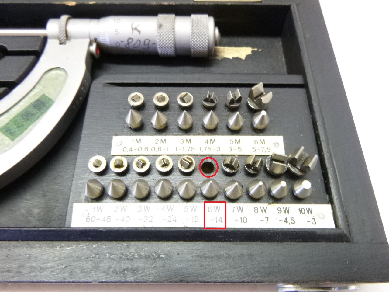 Gewindemessschraube, GewindebügelmessschraubeFEINMESSZEUGFABRIK SUHLFR. KEILPART & CO. SUHLDIN 863/1Bereich: 50 - 75 mm6 Einsatz-Paare M 0,4 - M 7,510 Einsatz-Paare Whitworth GewindeW 1 - W 10ein Messeinsatz W 6 fehlt !mit Schutzkastengebraucht, geprüft !Abmessungen: 250 x 125 x 35 mm
