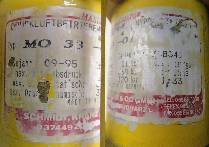 Membranspeicher, Blasenspeicher, DruckspeicherORSTA1/160424780TGL 10843Inhalt 1 lzul. Betriebsdruck 160 barzul. Betriebstemp. 80°CAbmessungen 220 x 117 x 117 mm