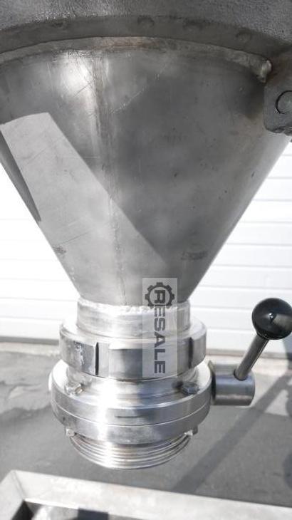 Eigenschaften: Länge 780 mm Gesamthöhe 2400 mm Motorleistung 0.25 kW Tiefe 780 mm Volumen 931 L Werkstoff Stahl Beschreibung: Flansch vorne - Reduzierung DN 50 Flansch hinten - Reduzierung DN 50 unten: Scheibenventil DN 100 Motor: 0,25 KW