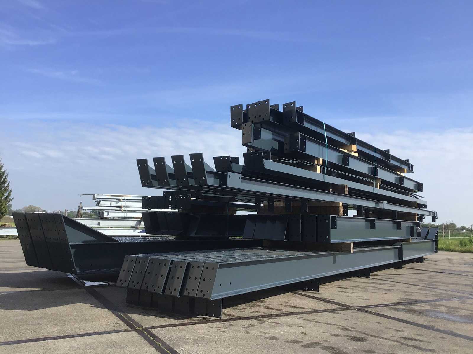 Dachneigung um 20 Grad Der Bau besteht aus: 7 Zwischenfachwerke: 2 Säulen I330 und die ersten 3,40 Meter des Dachträgers I330, der Rest des Dachbalken I270 2 Endträger: 2 x Ecksäule H160, 2 x Dachbalken H120, 2 x Zwischensäule I200, 2 x Zwischensäule U220 und 1 x Türbalken U220 à 4,50 mtr. 32 Kupplungsrohre 70 x 70 x 3 mm 28 Windstreben flach 50 x 6 mit Spanner M16 Pulverbeschichtete RAL7016 Schrauben 8.8 Mit NEN 1090 CE Zeichenzertifikat Das Grundstück ist kostenlos mit einem Gabelstapler beladen Auktions-ID: A1-41176-9