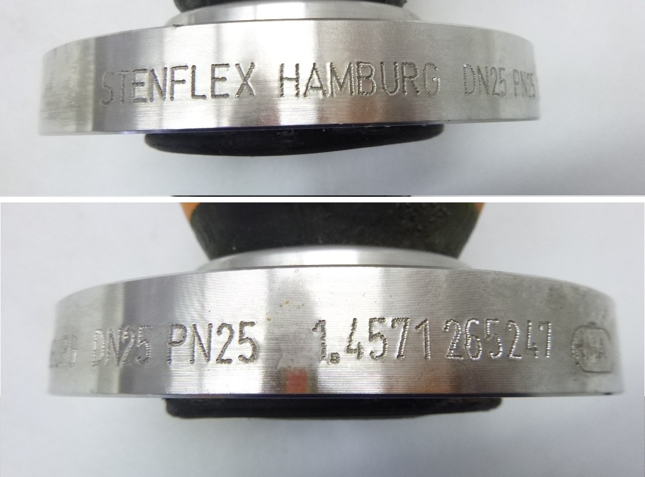 Gummikompensator, RohrverbinderSTENFLEX HAMBURGTyp AS DN32 PN16Breite: 125 mmFlansch: Ø 150 mmMaterial Flansch: Edelstahl (1.4571)Neu !Abmessungen: 115 x 125 x 115 mm