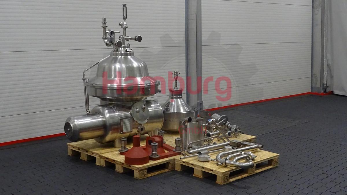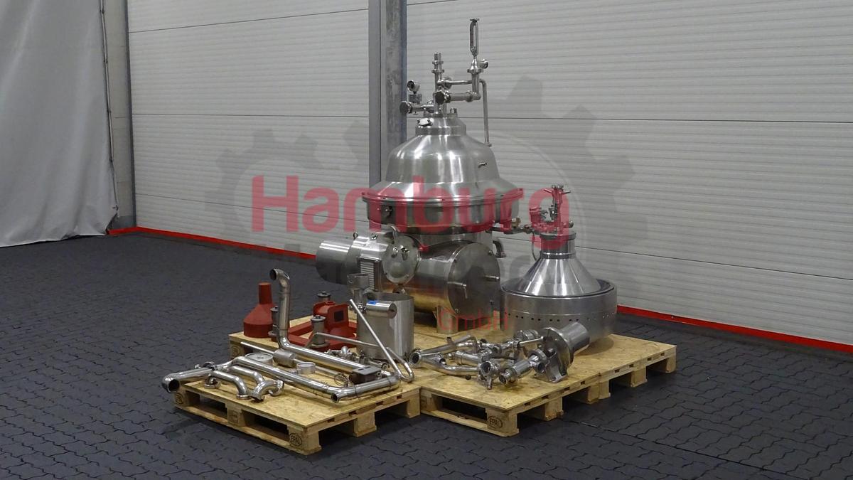 Selbstreinigender Milchabscheider. Die Maschine wird mit Trommel, Motor (18,5 kW), Motorabdeckung, Grundplatte mit Füßen, Wasserventilen (original Westfalia), allen Bedienelementen inklusive original GEA-Bedienfeld (ohne Karton), allen Zu- und Ablaufleitungen mit Pumpen, Durchflussanzeigern, Probenahmeventilen, Wartungswerkzeugen inklusive Presswerkzeug und Bedienungsanleitung geliefert. Zusätzliche Ausstattung: Ausgenommen: Karton zum Einbau aller Bedienelemente., Maschinentyp: Sahneseparator / Skimmer, Kapazität: 10.000 Liter pro Stunde, Schüsselgeschwindigkeit: 5.920 U/min, Motor: 18,5 kW - 380 V - 38 A - 1.465 U/min - 50 Hz - 3 Ph, Trommeldrehzahl: 5920 U/min, Gewicht: ± 1.700 kg, ...