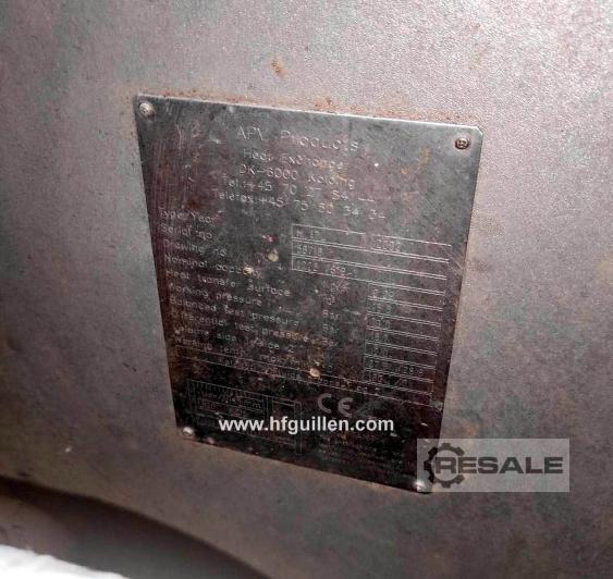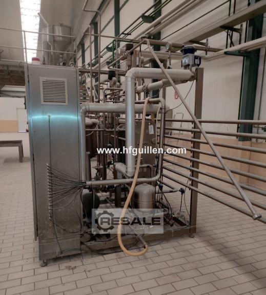 APV PASTEURISIERUNGSANLAGE FÜR FISCHBRÜHE 1.000 LITER/STUNDE Automatisches System für die Pasteurisierung von 1.000 Litern/Stunde abgeseihter Fischbrühe für die anschließende Verpackung. Hersteller: APV Jahr: 2002 BESCHREIBUNG DER BEDIENUNG: - Einlasstemperatur: 20 °C - Prozesstemperatur: 105 °C - Austrittstemperatur für Verpackungen: 35 °C Der gesamte Prozess besteht aus verschiedenen Schritten, die über das Bedienfeld programmiert werden können: 1. Sterilisation: erfolgt durch die Zirkulation von heißem Wasser bei einer Temperatur von 115-120 °C für 30 Minuten. 2. Produktion mit Wasser: Kühlwasser fließt innerhalb des Kreislaufs, bis die Prozesstemper ...