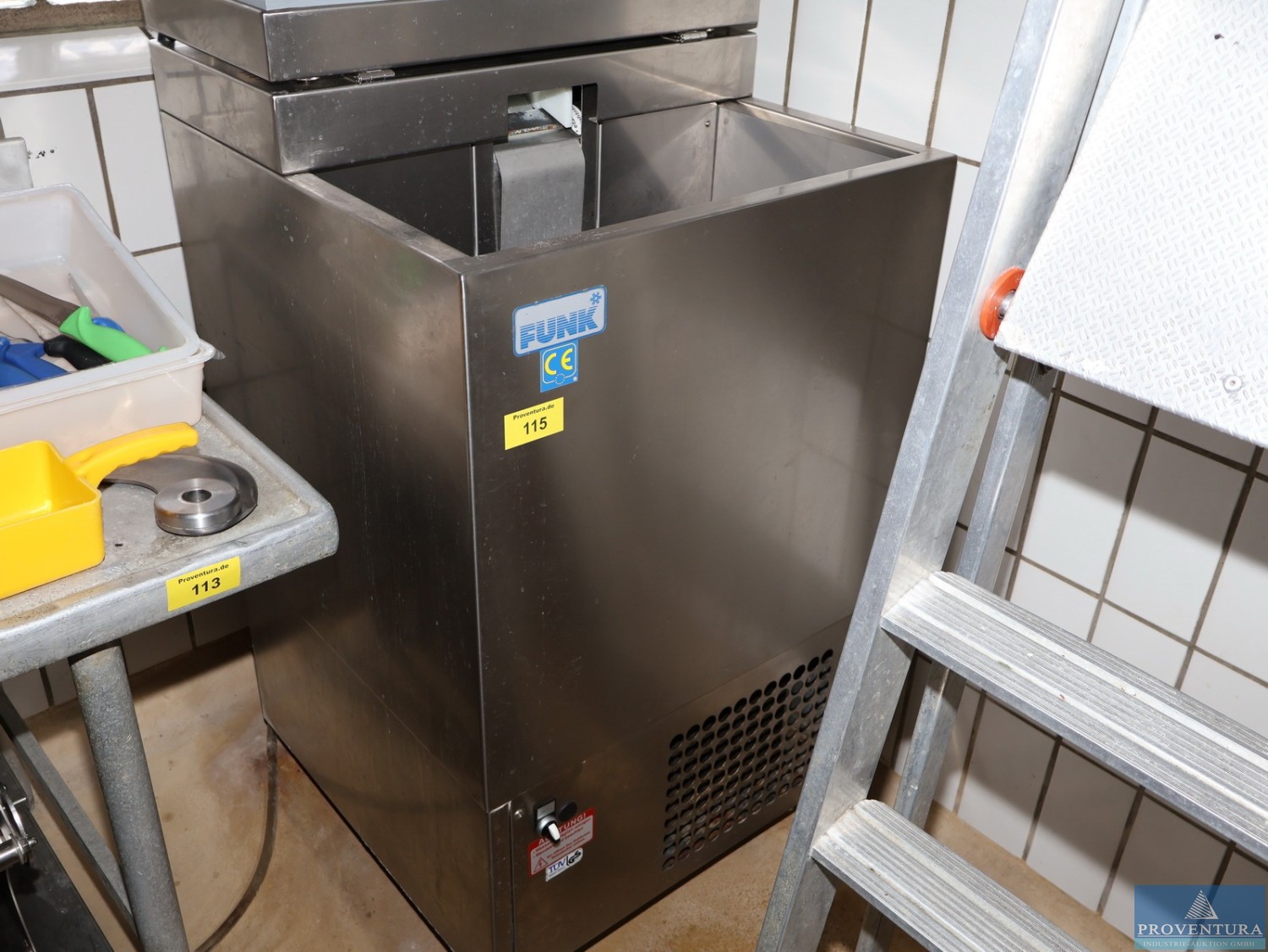 Scherbeneismaschine FUNK Edelstahl ca. 60x60x130h cm, 400 V, Typenschild nicht auffindbar, angeschafft 2005 für 5.200,- EUR netto