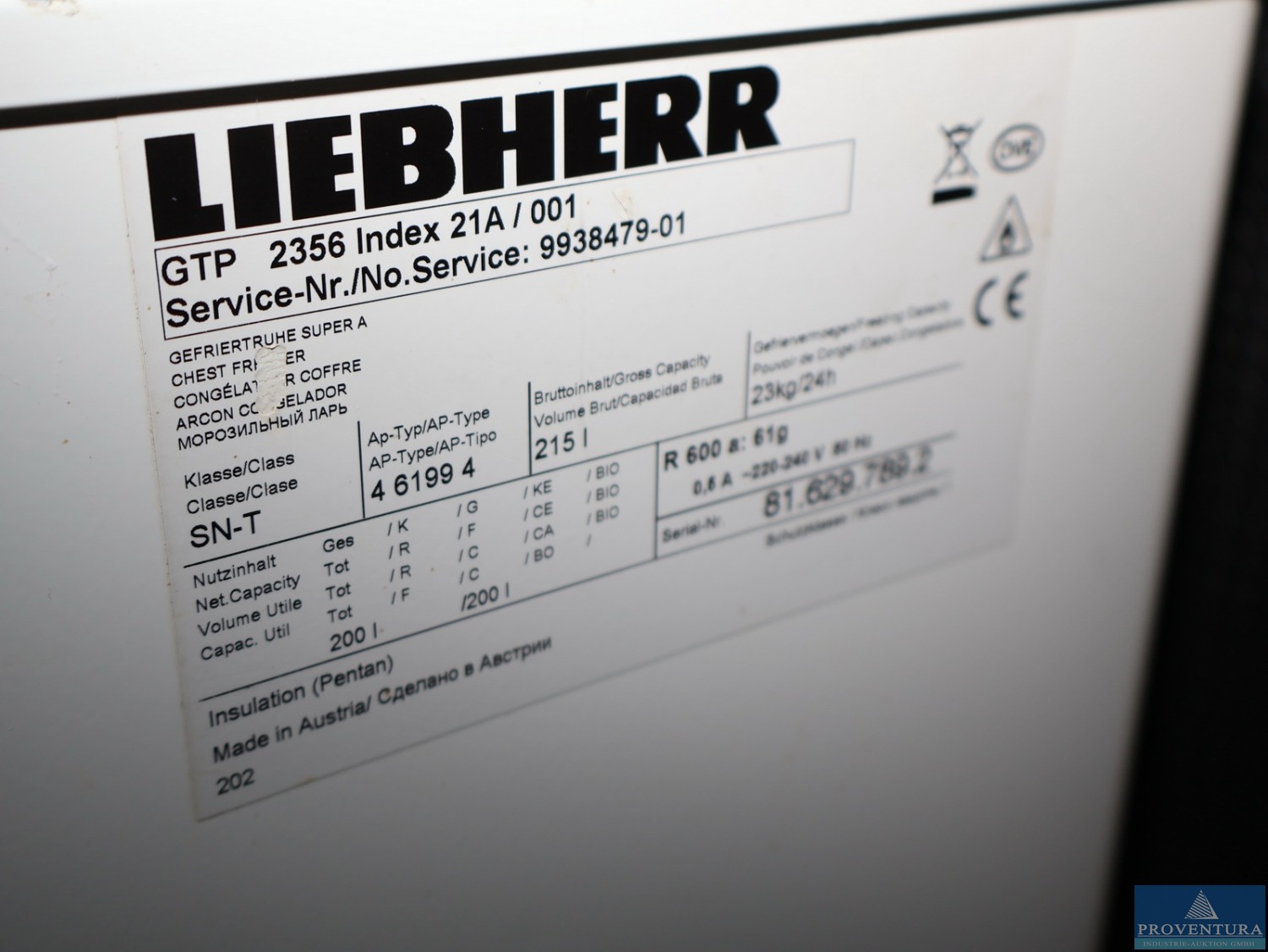 Tiefkühltruhe LIEBHERR GTP 2356 Index 21A, Kältemittel R600A, S/N 81.629.789.2, ohne Inhalte, derzeit noch in Betrieb, auf Podest stehend, angeschafft 2014 für 519,50 EUR netto