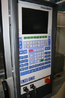 Hersteller Krauss Maffei Typ KM 800-8000 MC Steuerung MC4 Baujahr 1999 Schließeinheit Schliesskraft t 800 Öffnungsweg mm 2000 Holmmaß mm 1120 x 1000 Einbauhöhe min/max mm 600/1100 Plattengröße 1600 x 1510 Spritzeinheit Schneckendurchmesser mm 130 Spritzvolumen cm³ 6172 Spritzgewicht gr 5617 Spritzdruck bar 1296 Maße und Gewichte Abmessungen LxBxH m 10,6 x 2,9 x 2,4 Maschinengewicht Kg 47000 Sonstiges Roboter Kernzüge