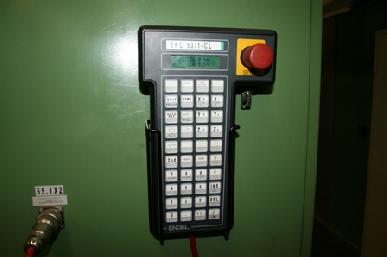 Hersteller Engel Typ ES 500/100 HL Engel Roboter Steuerung EC 88 Baujahr 1993 Schließeinheit Schliesskraft t 100 Öffnungsweg mm 600 Einbauhöhe min/max mm 250/600 Spritzeinheit Schneckendurchmesser mm 40 Spritzvolumen cm³ 239 Spritzgewicht gr 226 Maße und Gewichte Maschinengewicht Kg 7400 Sonstiges Engel Robot Typ ERC; 1
