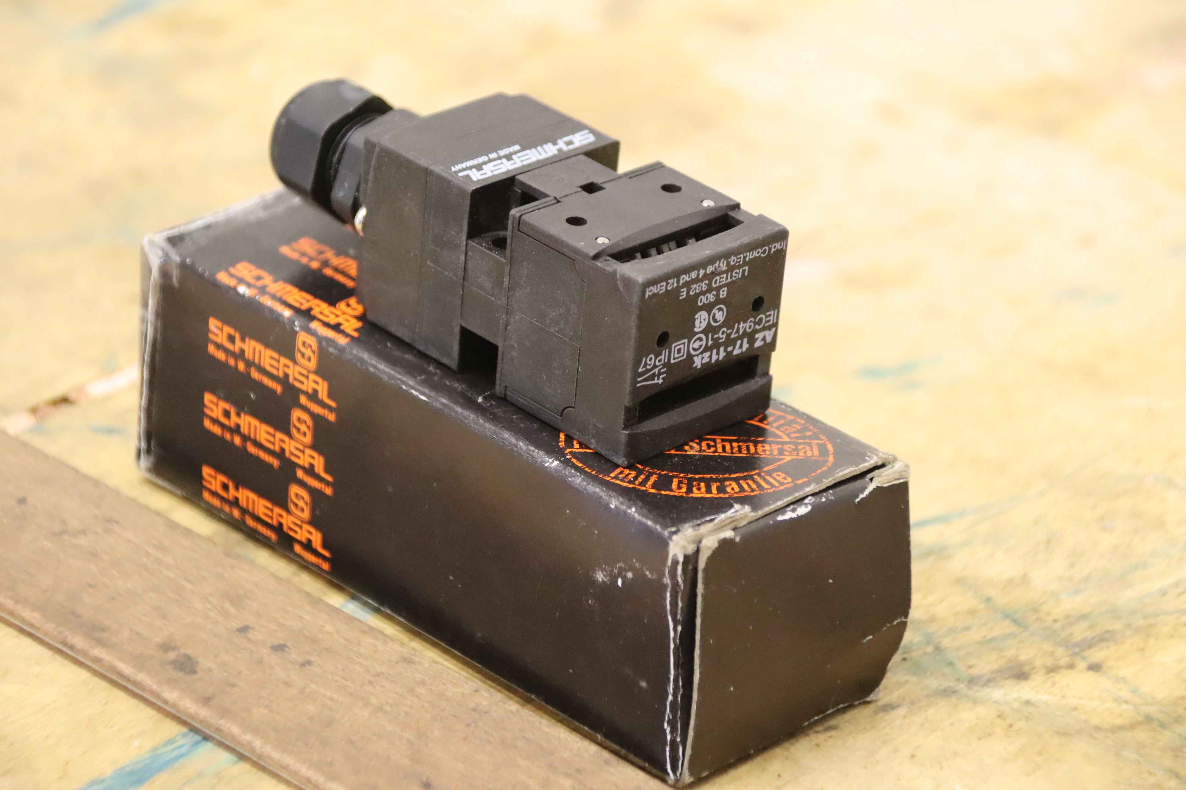 Sicherheitsschalter, Safety Switch, Magnet Türkontakt Sicherheits-Schalter, Sicherheits-Verriegelungsschalter-Hersteller: Schmersal, Sicherheits-Verriegelungsschalter unbenutzt Ovp -Typ: AZ 17-11ZK-Abmessung Karton: 120/40/H40 mm-Gewicht: 0,1 kg