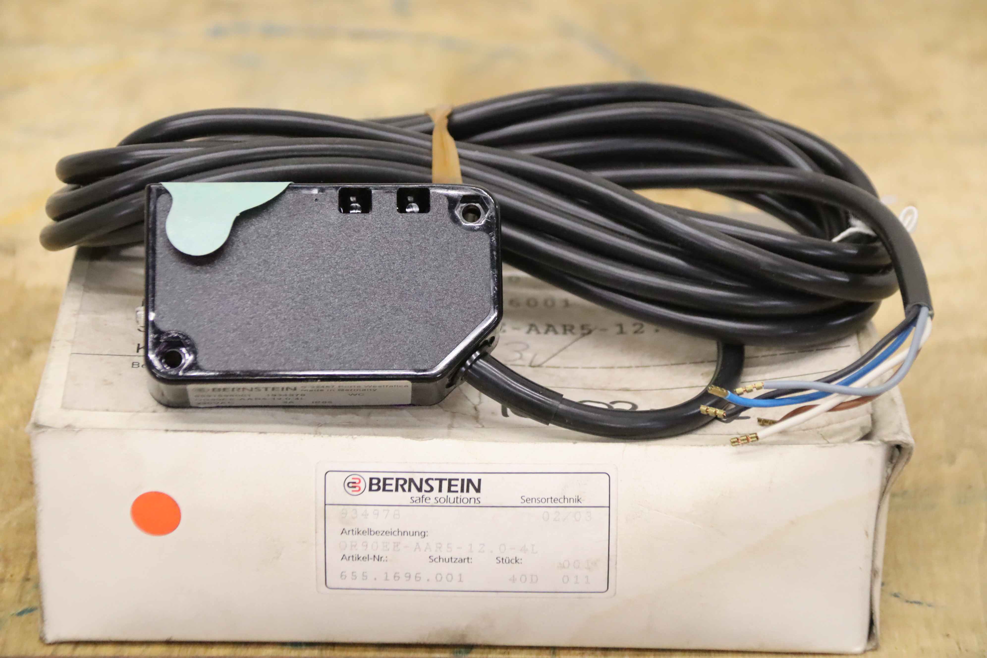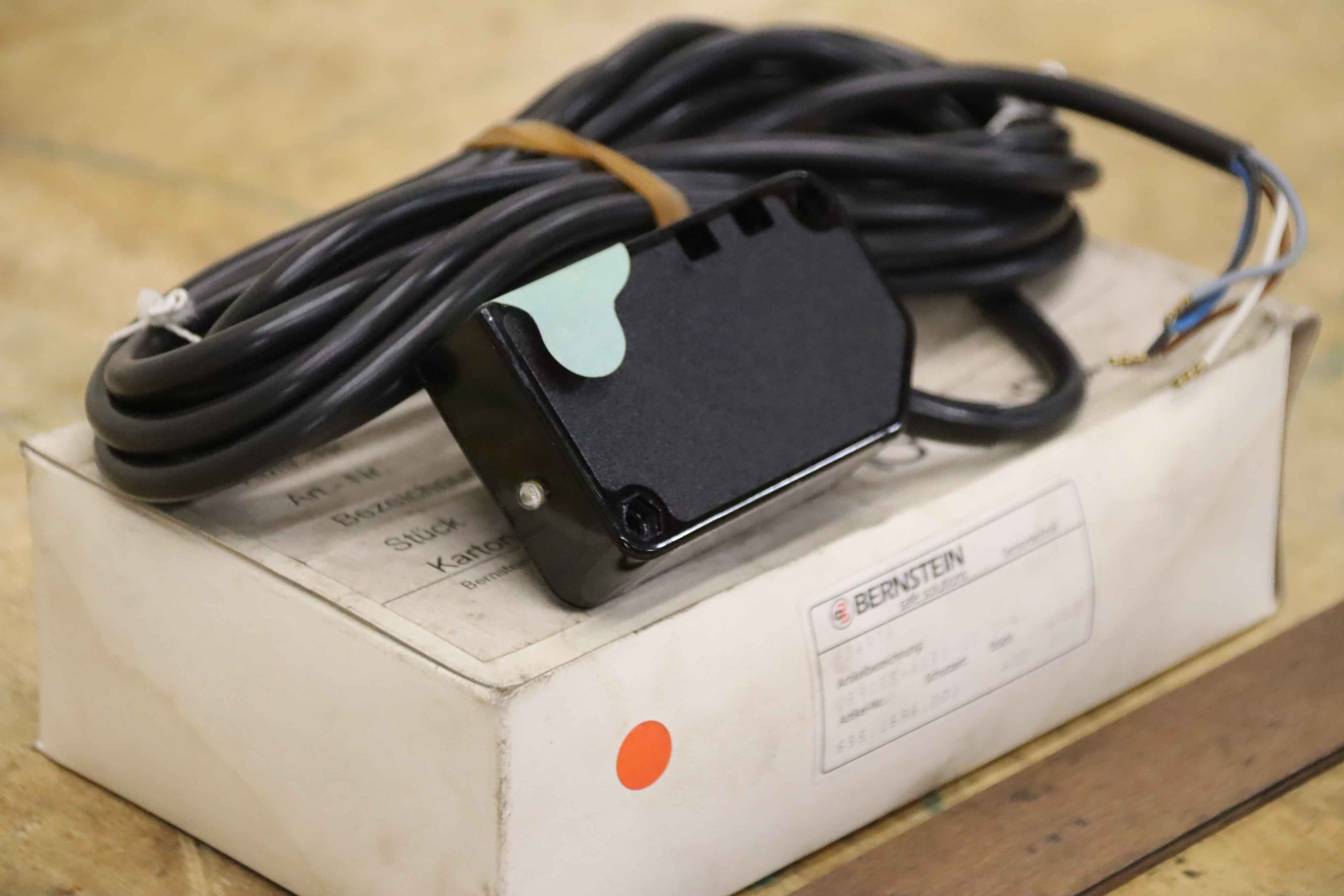 Reflexionslichtschranke, Lichtschranke, Reflexionslichttaster, Reflextaster, Lichttaster, Reflexions-Lichtschranke, Reflexlichttaster, Photoelectric Sensor, Lichtsensor,-Hersteller: Bernstein, Reflexionslichttaster unbenutzt Ovp-Typ: OR90EE-AAR5-12.0-4L-Abmessung Karton: 200/120/H60 mm-Gewicht: 0,4 kg