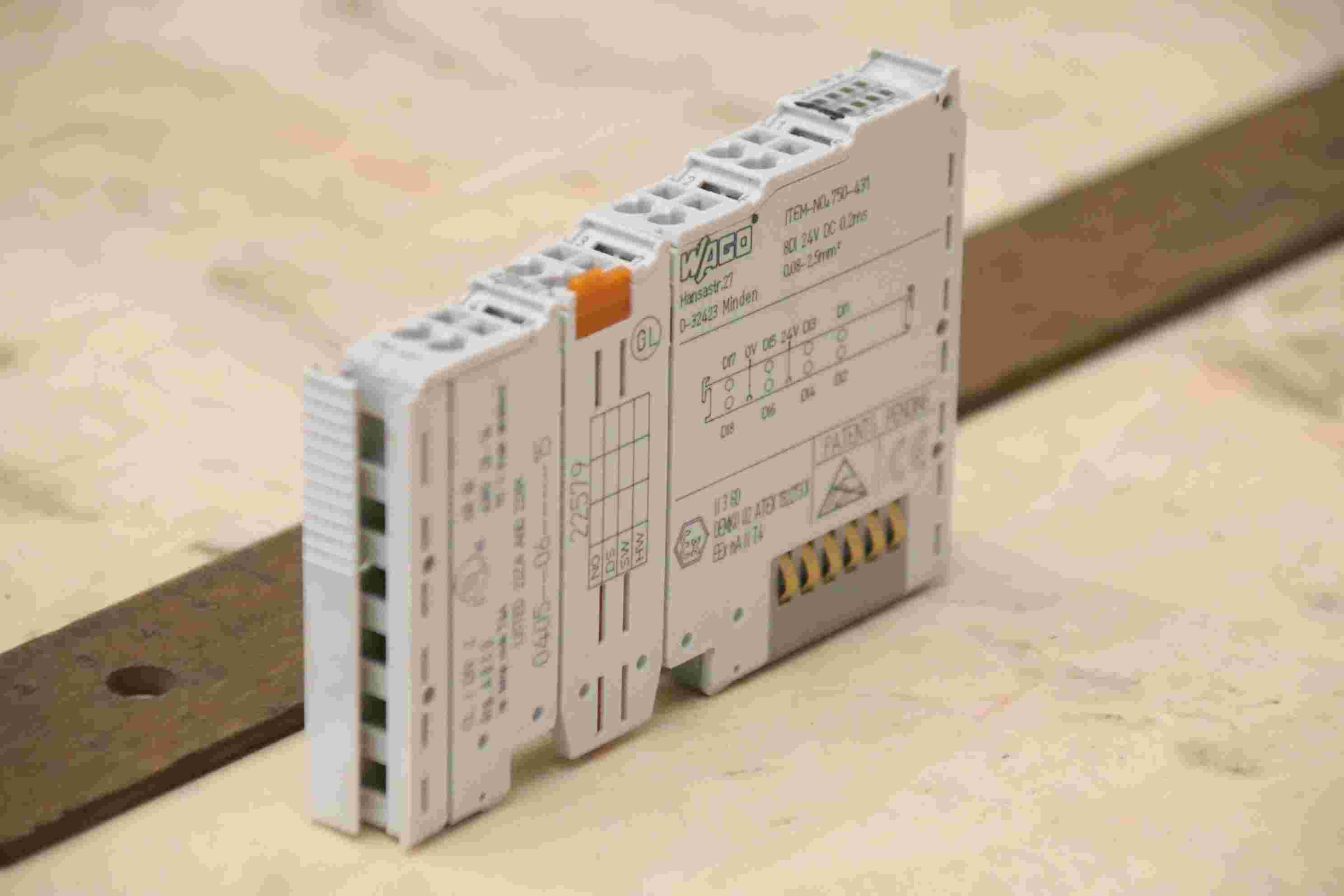 Kaltleiter-Relais, Schütz, Halbleiterschütz, Contactor, Relais, LWL-Konverter, Hutschienen-Netzteil, Schienen Netzteil, Netzteilklemme, Digital Eingangsklemme, Digital Ausgangsklemme, Potenzialeinspeiseklemme, Versorgungsmodul, Power supply, Einspeiseklemme -Hersteller: Wago, 8-Kanal-Digital Eingangsklemme-Typ: 750-431-Anzahl: 1 Stück vorhanden-Preis: pro Stück-Abmessungen: 15/67/H100 mm-Gewicht: 0,1 kg/Stück