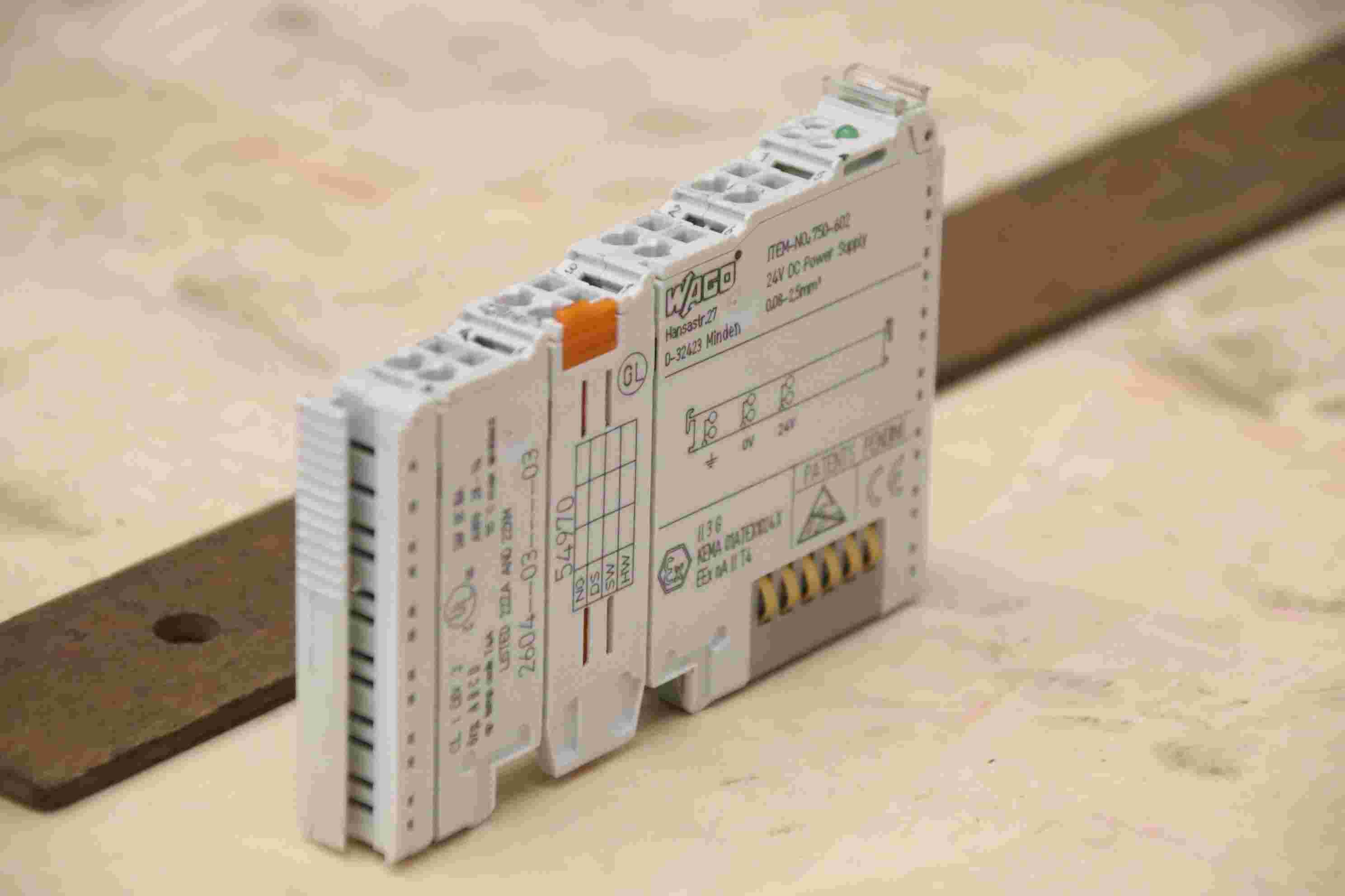 Schienen Netzteil, Netzteilklemme, Digital Eingangsklemme, Digital Ausgangsklemme, Potenzialeinspeiseklemme, Versorgungsmodul, Power supply, Einspeiseklemme -Hersteller: Wago, Potenzialeinspeiseklemme-Typ: 750-602-Anzahl: 1 Stück vorhanden-Preis: pro Stück-Abmessungen: 15/67/H100 mm-Gewicht: 0,1 kg/Stück