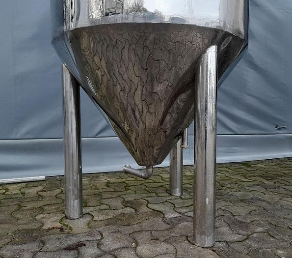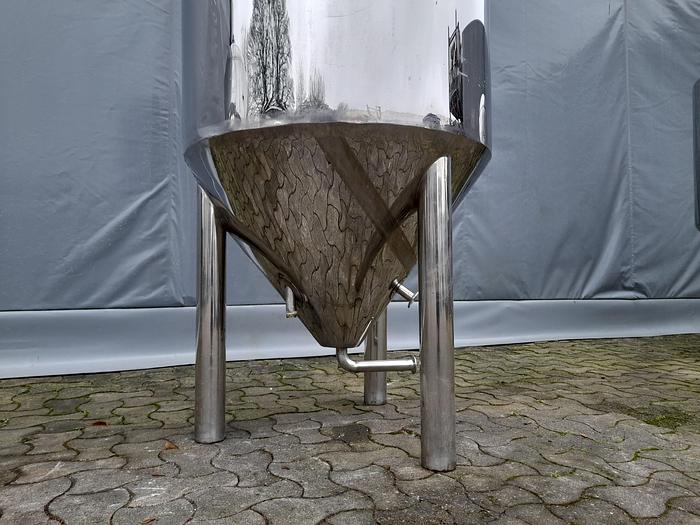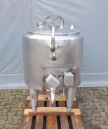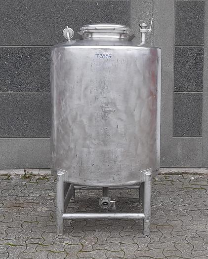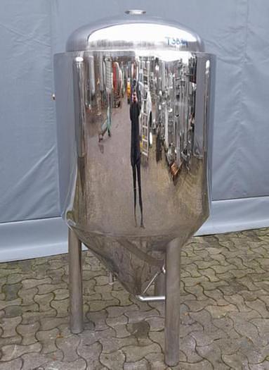 375 Liter, Best.-Nr.: T3894, Liter: 375, Material: Edelstahl AISI 304, Auf Lager: Ja, Menge auf Lager: 1 Stk., Artikel: Tank, Stehend: 3 Stk. Beine, Oben: Dished, Unten: Konisch, Doppelmantel: Ja, Isoliert: Ja, Außenverkleidung: Vollverschweißter Edelstahl, Innendurchmesser: 700 mm., Außendurchmesser: T 820 mm., Gesamthöhe: 1750 mm.