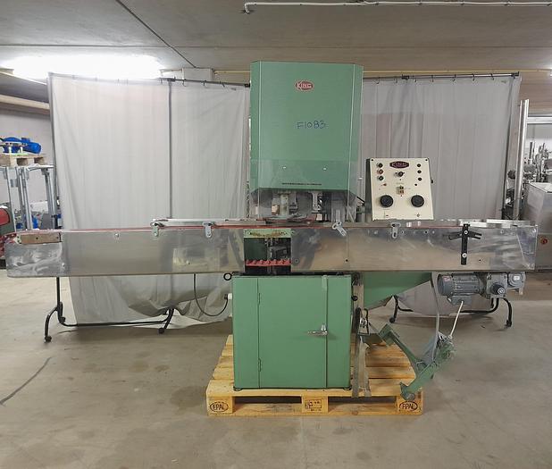 Best.-Nr.: F1083, Artikel: Kapselmaschine, Auf Lager: Ja, Menge auf Lager: 1 Stk., Förderband: L 2820 x B 100 mm., Kapazität: Max 4800 Stk./min., Abmessungen: L 2820 x B 1450 x H 1750 mm., Gesamthöhe: 1750 mm., Hersteller: King, Modell: CAP 60, Dokumentation: Ja, Sonstiges: Für Kunststoff-Schraubverschlüsse