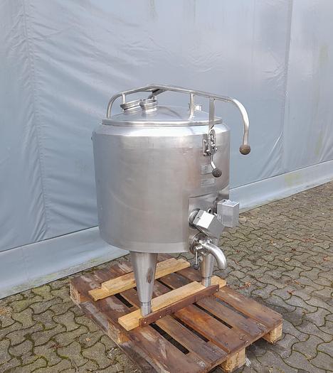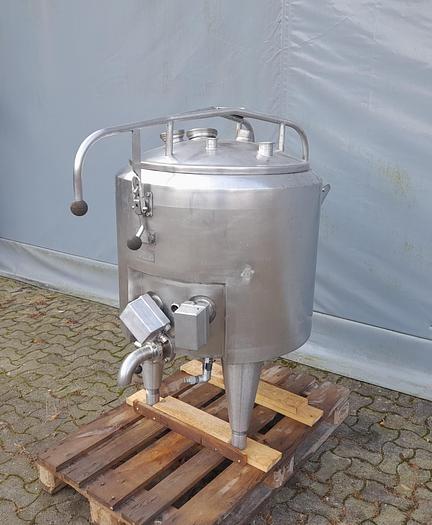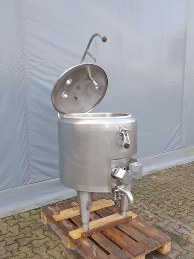 160 Liter, Best.-Nr.: T3976, Liter: 160, Material: Edelstahl AISI 304, Auf Lager: Ja, Menge auf Lager: 1 Stk., Artikel: Tank, Stehend: 3 Stk. Füße , Oben: Klöpperdeckel, Boden: Flach schräg, Heizung: 2 Stk., Isoliert: Ja, Außenverkleidung: Vollverschweißt Edelstahl, CIP: Ja, im Deckel, Innendurchmesser: 640 mm., Außendurchmesser: D 795 mm., Gesamthöhe: 1500 mm., Hersteller: Pasilac Therm, Modell/Typ: 4203-160