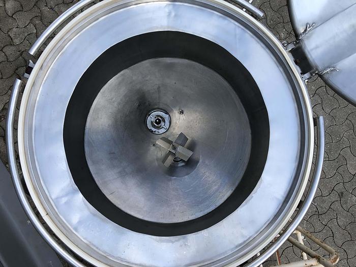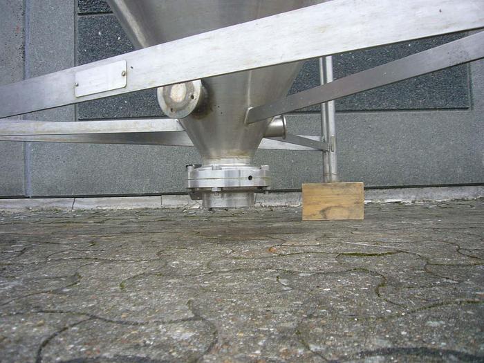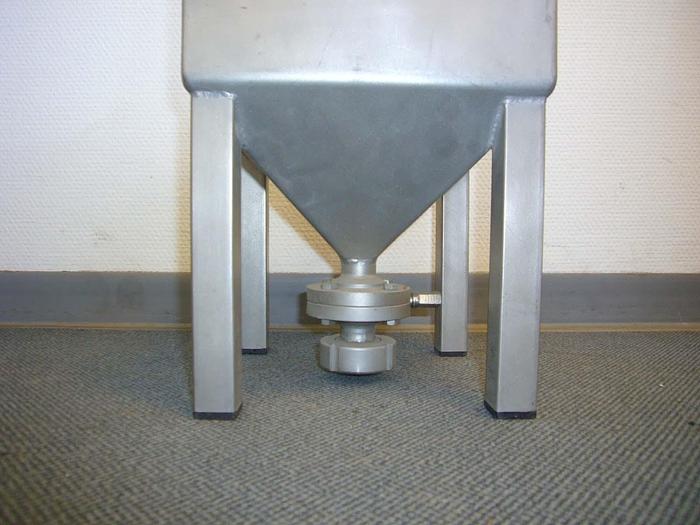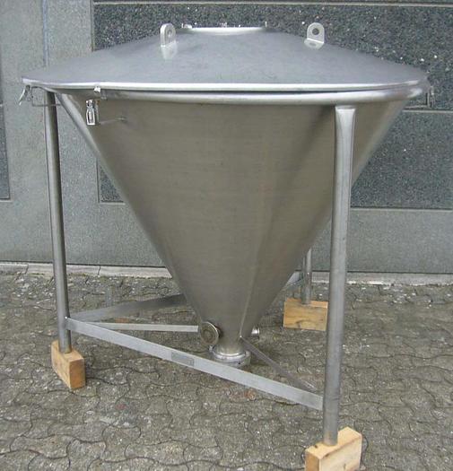 500 Liter, Best.-Nr.: T3246, Liter: 500, Material: Edelstahl AISI 304, Auf Lager: Ja, Menge auf Lager: 1 Stk., Artikel: Trichter, Stehend: 3 Stk. Füße, Platte: Offen, mit Verstärkungsring und Deckel, Boden: konisch, Maße: B 1380 x H 1170 mm.