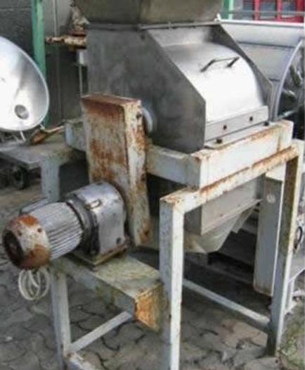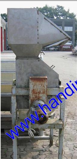 Best.-Nr.: R048, Brecher, Edelstahl,, stehend auf Beinrahmen., Getriebemotor mit Kettenantrieb., Einlauftrichter., Brechhaus L 480 x B 390 mm., Material: Edelstahl AISI 304