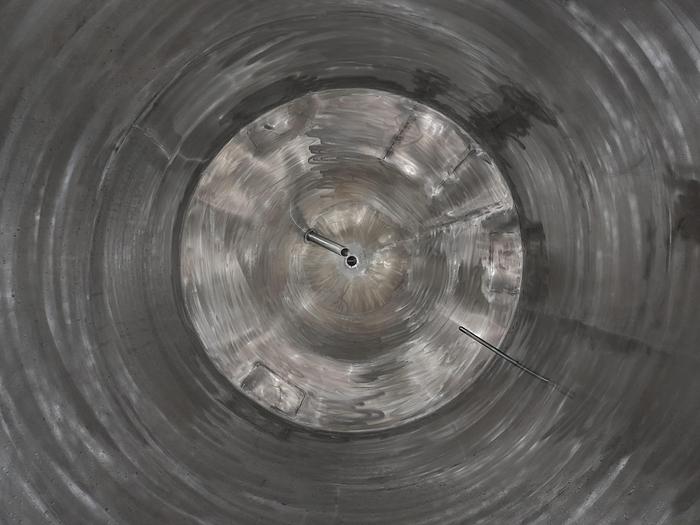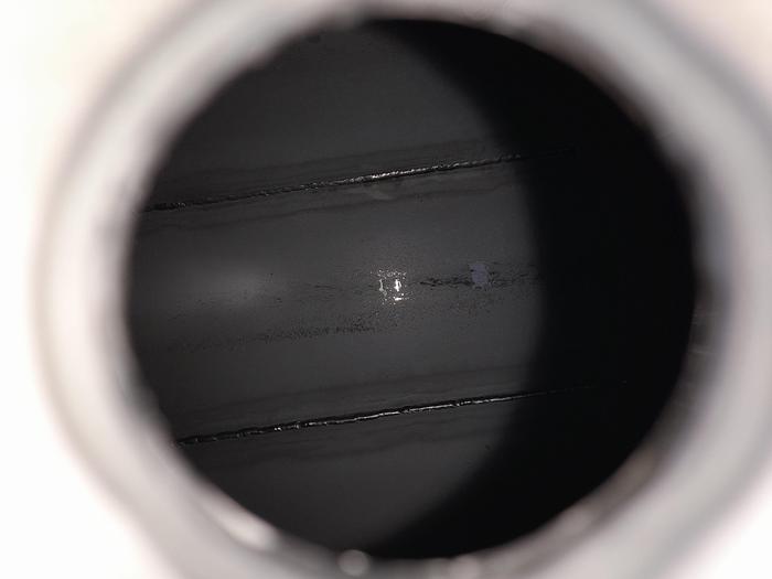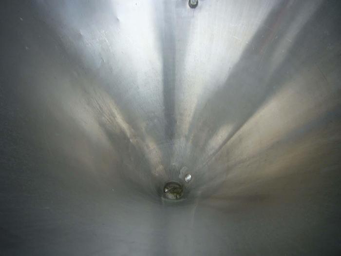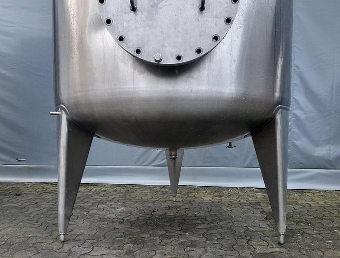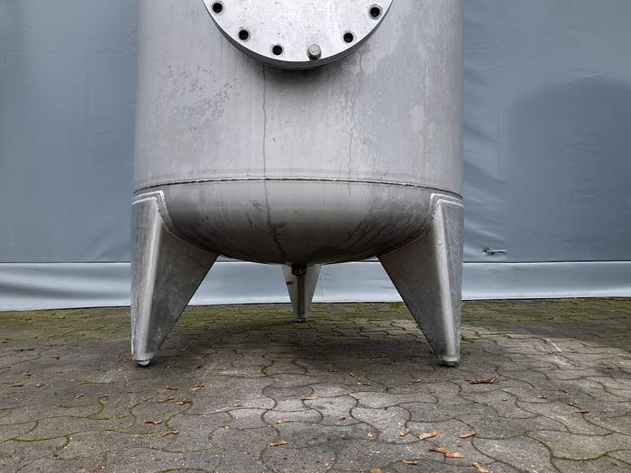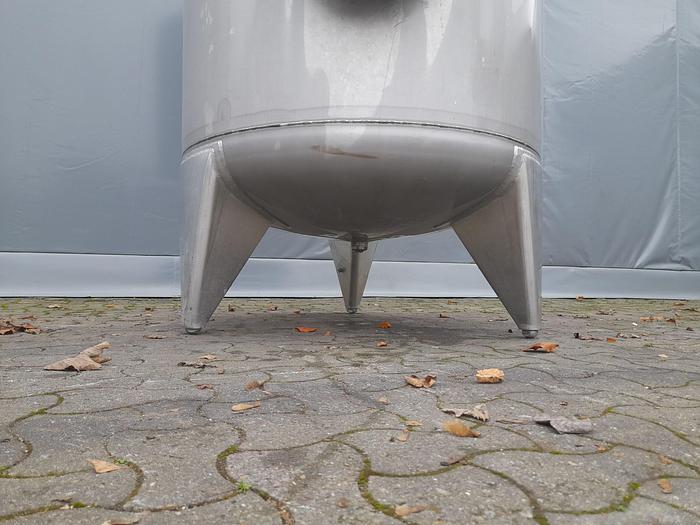 2.230 Liter, Best.-Nr.: T3899, Druckbehälter, Edelstahl aus säurebeständigem Stahl, oben geschlossen, auf Füßen stehend, oben und unten gewölbt, Tankdeckel seitlich verschraubt., Der Behälter ist an der Innenseite poliert, Früher für Druck verwendet., 1200 mm., Liter: 2.230, Material: Edelstahl AISI 316