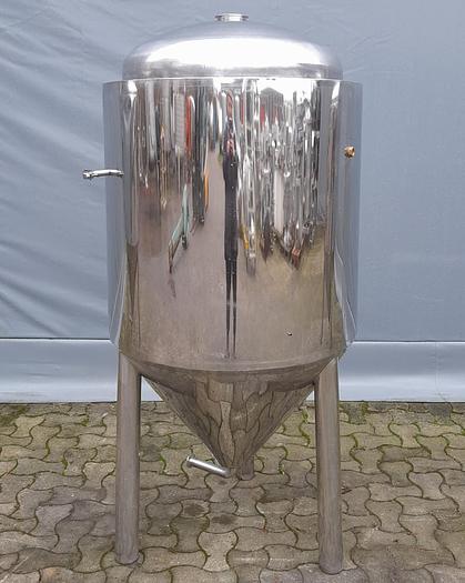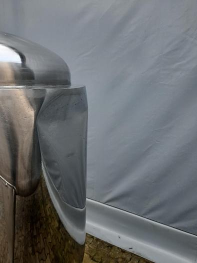 375 Liter, Best.-Nr.: T3896, Liter: 375, Material: Edelstahl AISI 304, Auf Lager: Ja, Menge auf Lager: 1 Stk., Artikel: Tank, Stehend: 3 Stk. Beine, Oben: Dished, Unten: Konisch, Doppelmantel: Ja, Isoliert: Ja, Außenverkleidung: Vollverschweißter Edelstahl, Innendurchmesser: 700 mm., Außendurchmesser: D 820 mm., Gesamthöhe: 1750 mm., Sonstiges: Der Tank hat eine Delle in der Außenverkleidung
