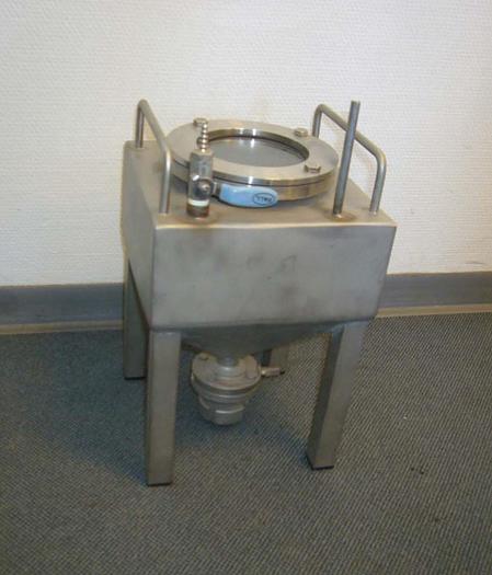 5 Liter, Best.-Nr.: T3249, Liter: 5, Material: Edelstahl AISI 304, Auf Lager: Ja, Menge auf Lager: 1 Stk., Artikel: Tank, Stehend: 4 Stk. Füße, Platte: glatt, Boden: konisch, Maße: L 210 x B 210 x H 200 mm. , Sonstiges: Schauglas in der Oberseite