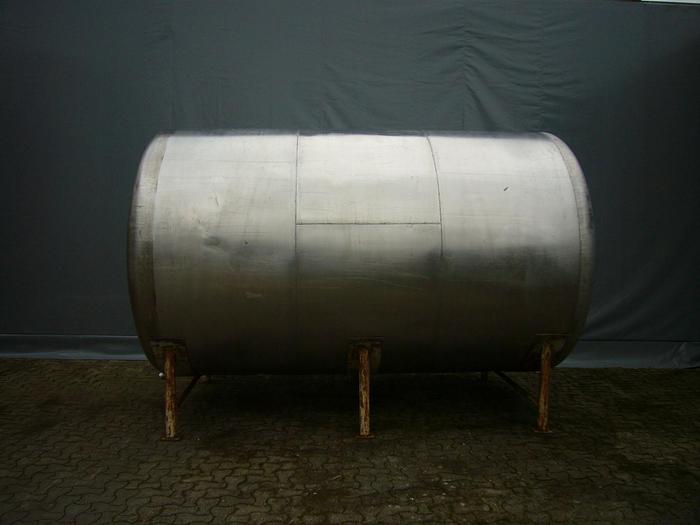 10.000 Liter, Best.-Nr.: T3247, Tank, Edelstahl, oben geschlossen, in Wiegen liegend., Gewölbte Endböden, Tankdeckel im Endboden., 2030 mm., Liter: 10.000, Material: Edelstahl AISI 304