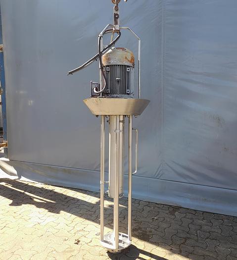 Best.-Nr.: R1222, Material: Edelstahl AISI 304, Förderhöhe: D 140 mm., Auf Lager: Ja, Menge auf Lager: 1 Stk., Artikel: Rührwerk, Rührwerkstyp: Homogenisieren, Rührwerksplatz: Von oben, Wellenlänge: 1220 mm., Wellendurchmesser: 30 mm., Gesamthöhe: 2250 mm., Motor: 15 kW - 380 Volt - 2940 U/min., Hersteller: Silverson, Modell: GX20, Typ: 7M2136