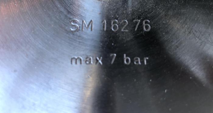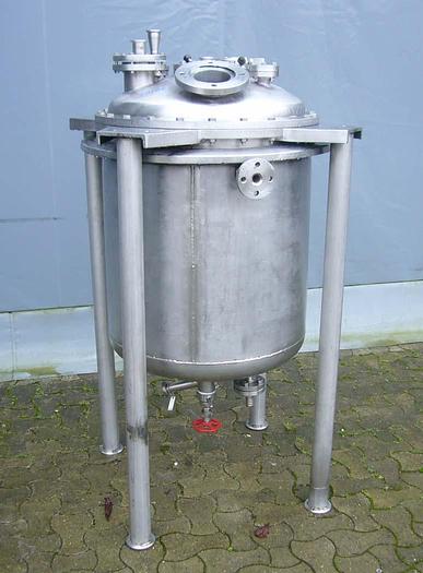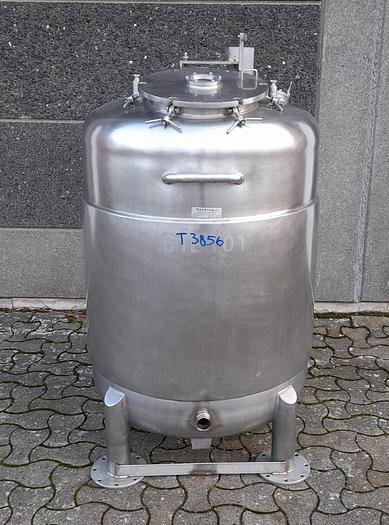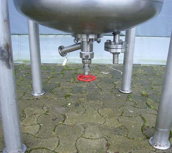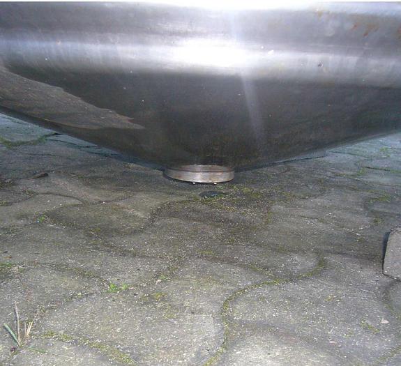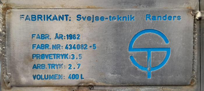 400 Liter, Best.-Nr.: T3856, Liter: 400, Material: Edelstahl AISI 316, Auf Lager: Ja, Menge auf Lager: 1 Stk., Artikel: Tank, Stehend: 4 Stk. Anzahl der Beine, Oben: Unten: Unten: Verzinkt, Doppelmantel: Ja, Inspektionsdeckel: Oben, 280 mm., Arbeitsdruck: 2,7, Innendurchmesser: 750 mm., Außendurchmesser: T 770 mm., Gesamthöhe: 1200 mm., Hersteller: Svejse-teknik Randers, Baujahr: 1982