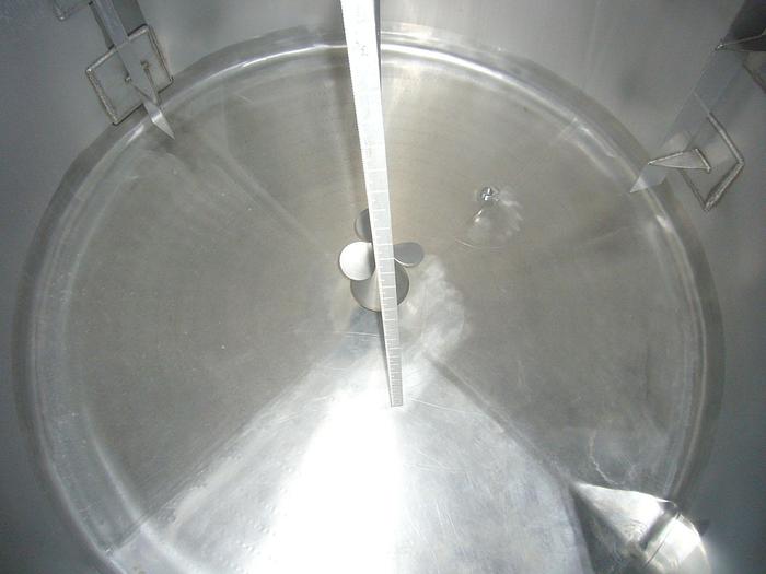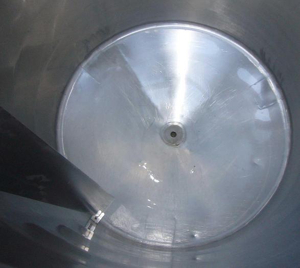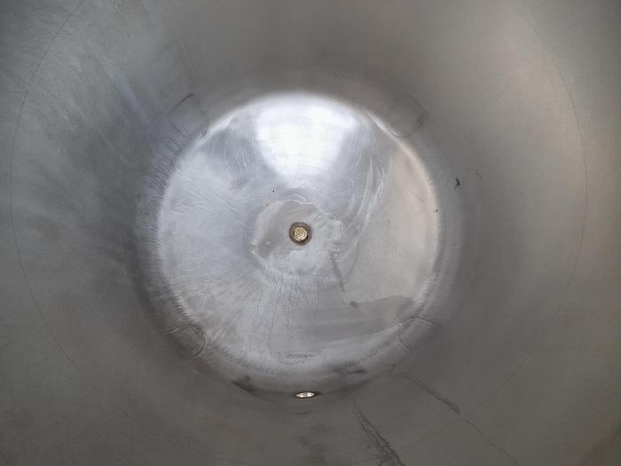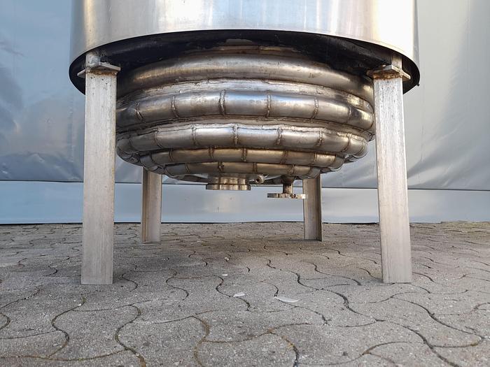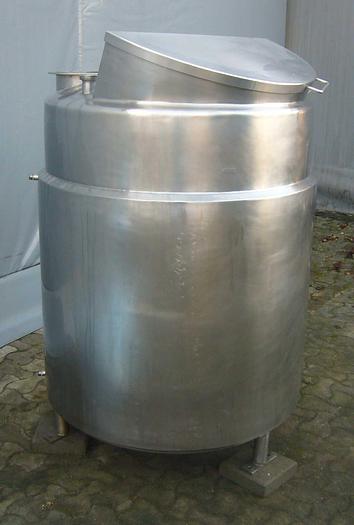 700 Liter, Best.-Nr.: T3104, Liter: 700, Material: Edelstahl AISI 316, Auf Lager: Ja, Menge auf Lager: 1 Stk., Artikel: Tank, Stehend: 3 Stk. Füße, Oben: Konisch mit Klappdeckel, Boden: Konisch, Doppelmantel: Ja, Rührwerk: Flansch für Rührwerk oben, Innendurchmesser: 900 mm., Gesamthöhe: 1970 mm.
