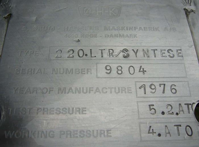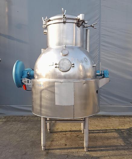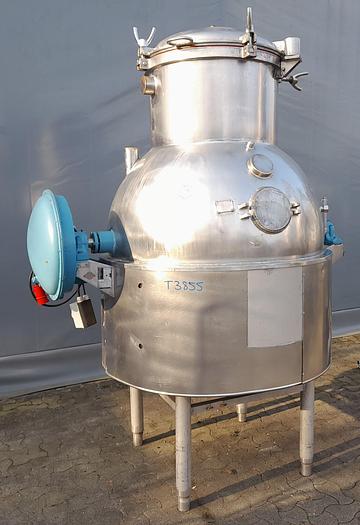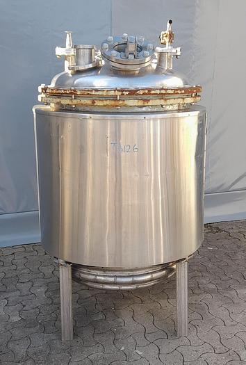 220 Liter, Best.-Nr.: T3128, Liter: 220, Material: Edelstahl AISI 316, Auf Lager: Ja, Menge auf Lager: 1 Stk., Artikel: Tank, Stehend: 4 Stk. Anzahl der Füße, Oben: Offen, gewölbt mit verschraubtem Deckel, Boden: Dished, Doppelmantel: Ja, Innendurchmesser: 600 mm., Außendurchmesser: D 680 mm., Gesamthöhe: 1380 mm., Hersteller: . H.K., Typ: 220/Syntese, Baujahr: 1976, Sonstiges: Inspektionsdeckel oben