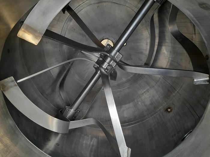 150 Liter, Best.-Nr.: T3847, Liter: 150, Material: Rostfreier säurebeständiger Stahl AISI 316, Auf Lager: Ja, Menge auf Lager: 1 Stk., Artikel: Kippbarer Kessel, Stehend: Auf Säulen, Oben: Klappdeckel, Isoliert: Ja, Außenverkleidung: Vollverschweißt Edelstahl, Rührwerk: Ja, Rührwerkstyp: Rahmenrührwerk mit Schaber, Motor: 30 kW, Hersteller: Jøni, Modell/Typ: Multi-mix, Sonstiges: Elektrisch beheizt und mit elektrischer Kippe
