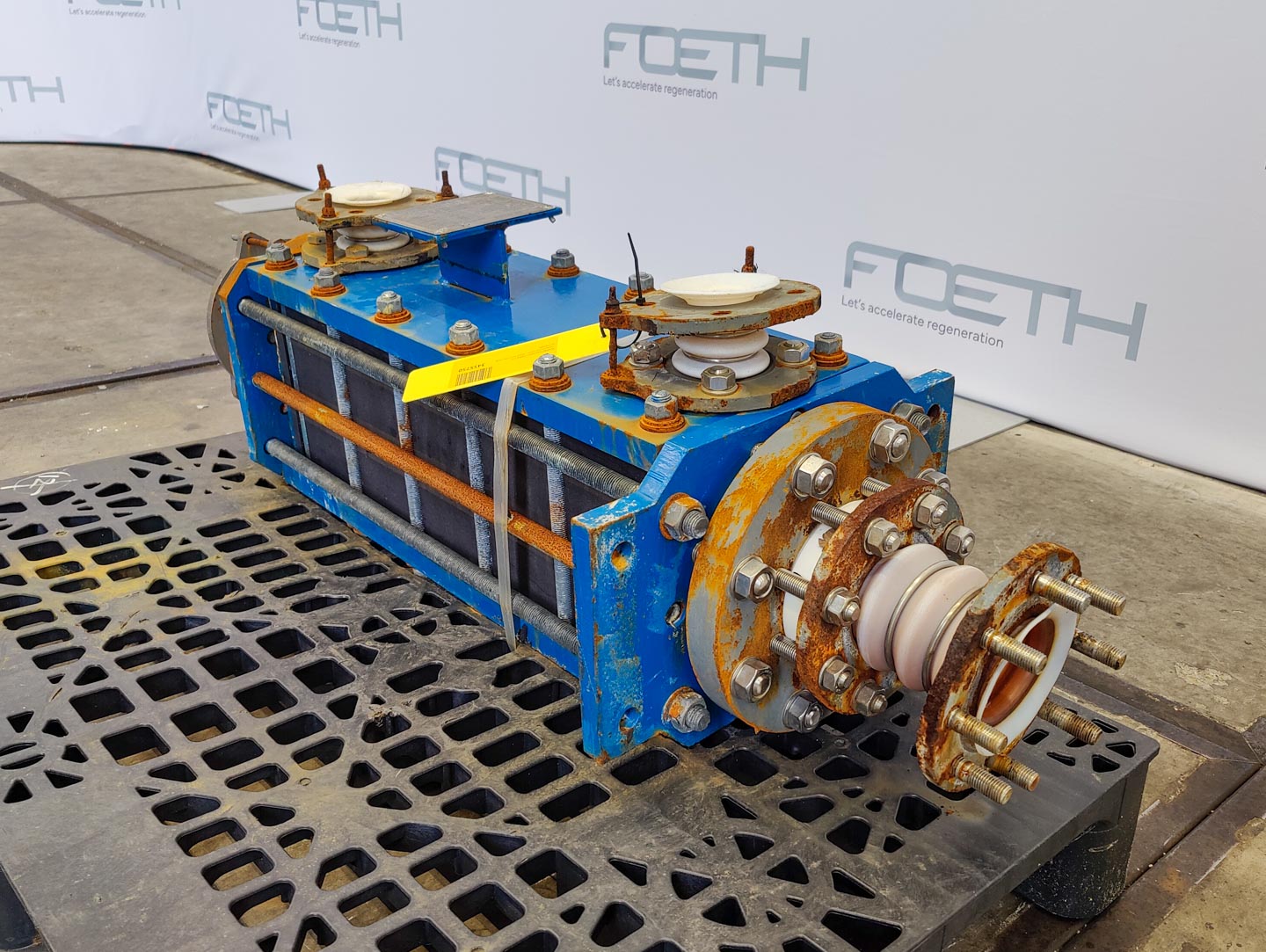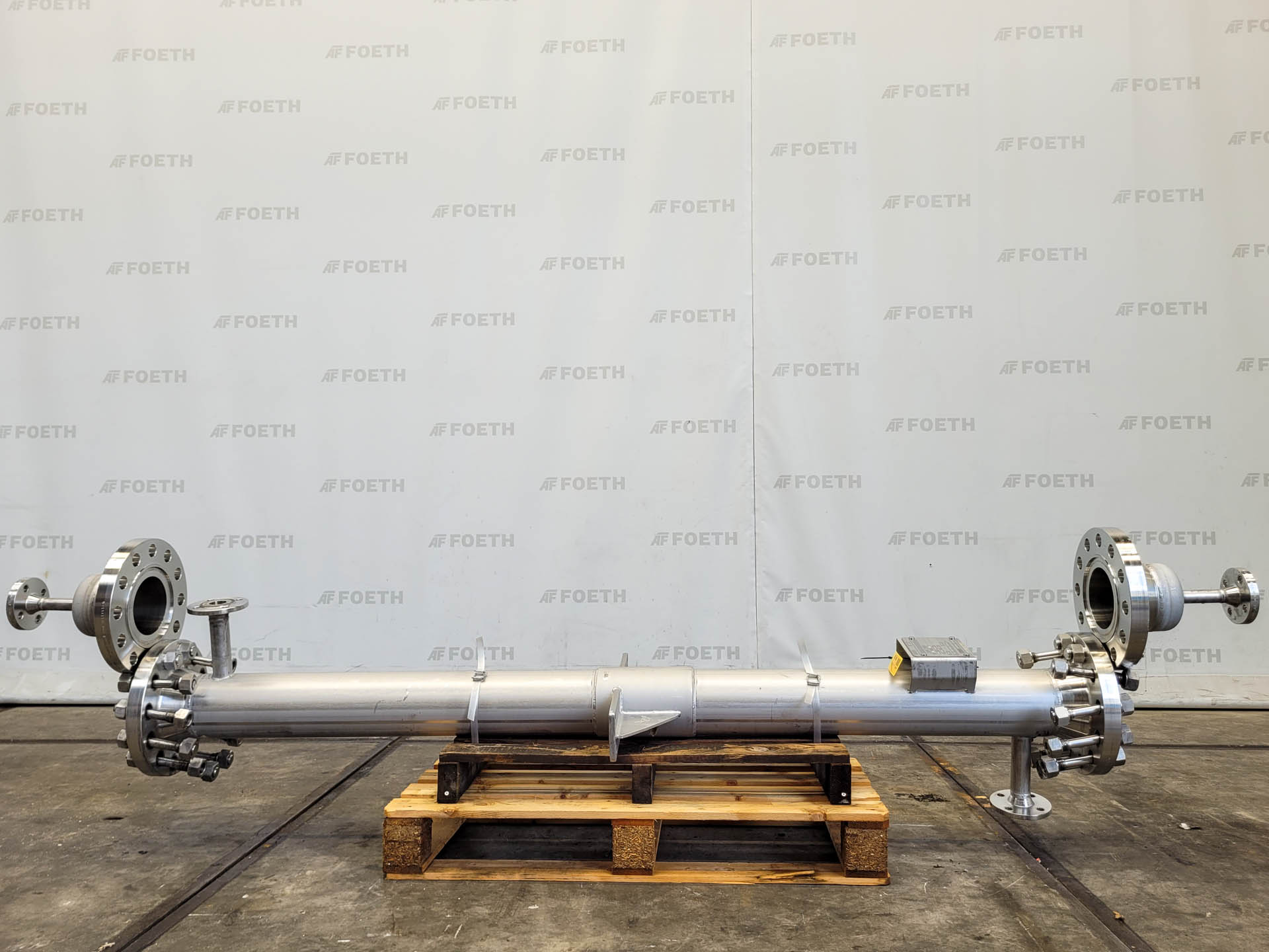General SKU212T539 StandortBarneveld HerstellerBuss-SMS Pressure Betriebsdruck Mantel4.8 Bar Betriebsdruck der Rohren3.2 Bar Haupteigenschaften Schale (Material)Edelstahl Rohr (Material)Edelstahl Oberfläche7.5 M2 Spezifizierte Eigenschaften - Rohrbündelwärmetauscher MaterialEdelstahl 1.4571 (316Ti) Wärmetauschercheck Horizontalcheck Heizfläche7,5 m2 Rohreninhalt53 Ltr. Anzahl der Rohren:30 Rohrendurchmesser25 mm Rohrenlänge3500 mm Wandstärke der Rohren2 mm Max. Temperatur200 °C Mantelinhalt146 Ltr. Manteldurchmesser273 mm Mantellänge3850 mm Max. Temperatur200 °C MantelanschlüsseDN100, DN50, DN80 DeckelanschlüsseDN50 (2x) Information №22.11.0519/10  ...