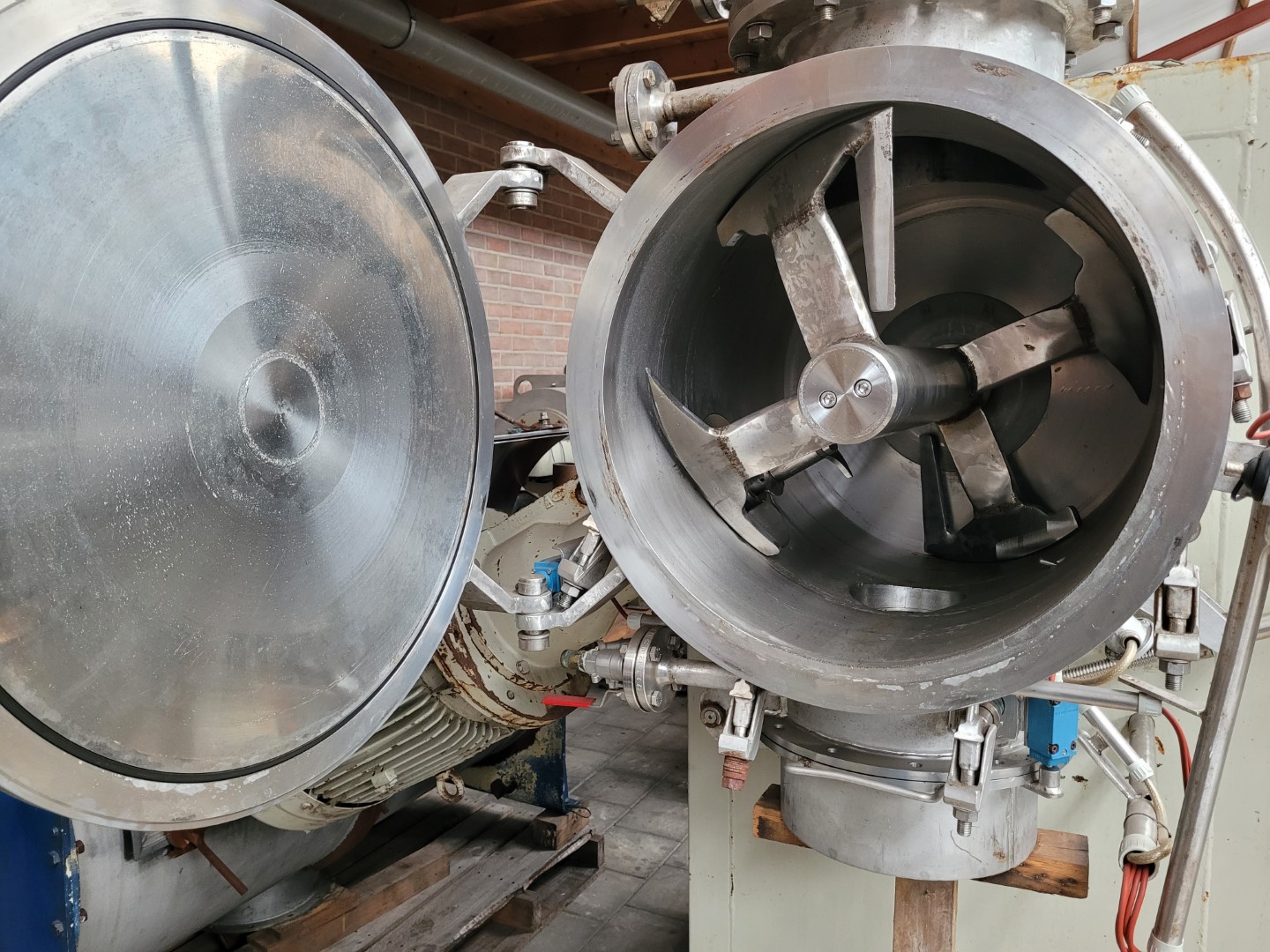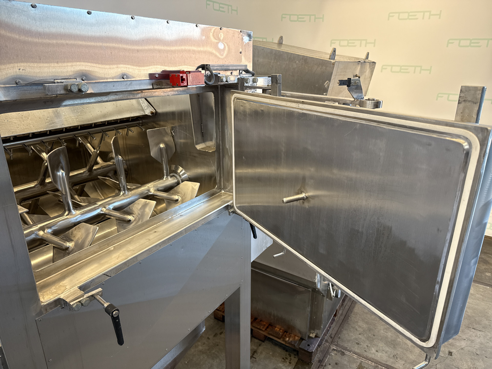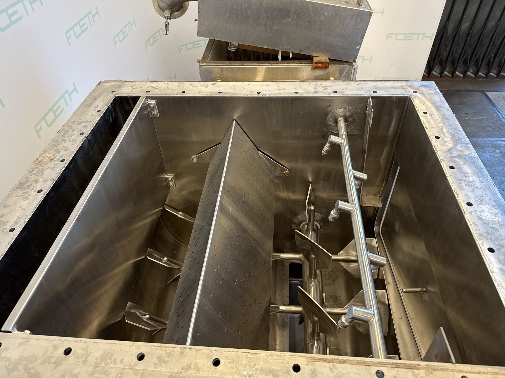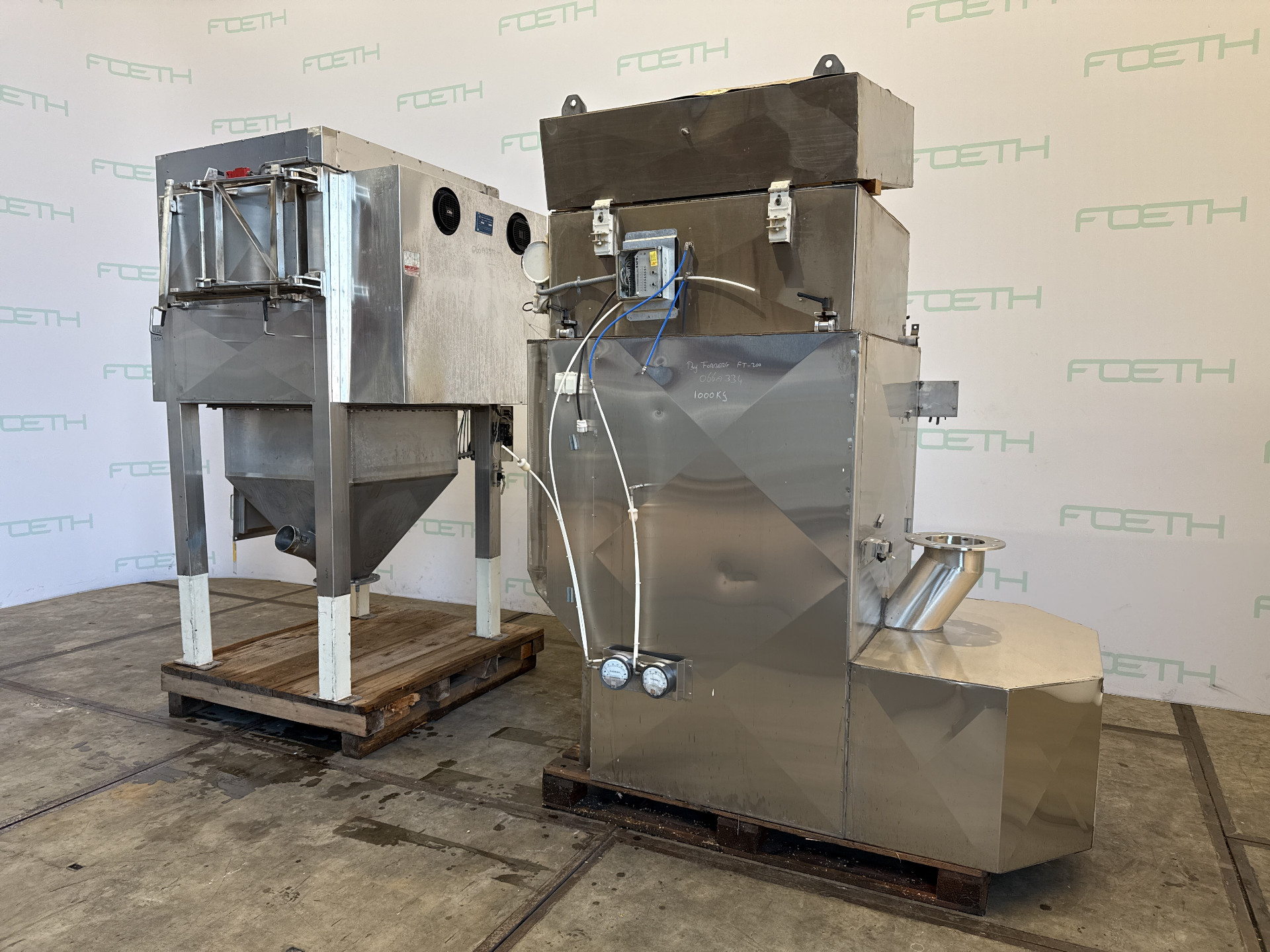 General SKU066A334 HerstellerHalvor Forberg A/S Larvik Norway TypFT-200 №S12-94 Baujahr1994 Gebaut auf Gestellcheck Haupteigenschaften MaterialEdelstahl Inhalt200 Ltr. Motor5.5 KW Spezifizierte Eigenschaften - Paddelmischer Schaufelmischercheck Doppelwellen Mischercheck Nutzinhalt200 Ltr. Muldenabmessungen1000x850x950mm MannlochcheckInspection hatch 785x410mm AuslaufDia. 220 mm Motor5,5 KW, 380/660 Volt MaterialEdelstahl 1.4301 (304) Information StandortBarneveld Platzbedarf 1,7x1,6 m Totalhöhemixer without filter 2,5m Gewicht2250kg Zusätzliche Spezifikationen- Trockner ausgerüstet mit Forberg PMS Pin Mill System = 2 high speed rotating shafts with welded pins  ...
