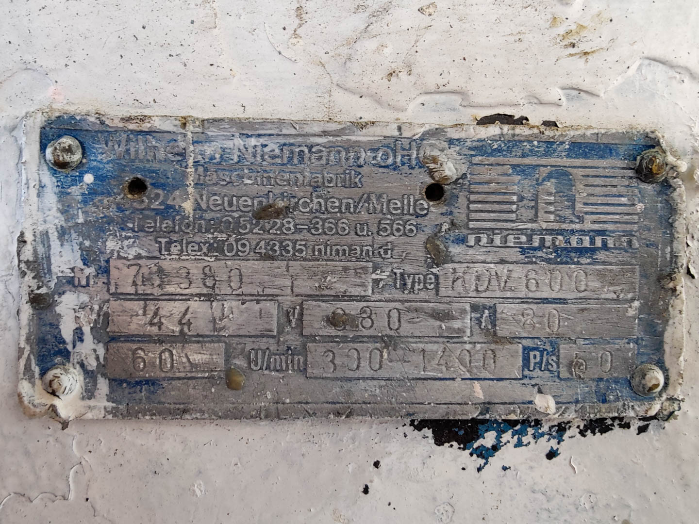 General SKU298T694 HerstellerNiemann TypKDV.600 №73380 Baujahrunknown StandortBarneveld Haupteigenschaften MaterialEdelstahl Motor44 KW Spezifizierte Eigenschaften - Dissolver Dissolvercheck Scheibendurchmesser490 mm Motor44 kW, 380 Volt Wellendrehzahl300-1400 rpm Mit Kessel2 Kesselabmessungendia 945x910 mm Auslauf85 mm MaterialEdelstahl Information Platzbedarf2,5x0,8 m Totalhöhe3,4 m Gewicht2000 kg Was Sie von Maschinen von Foeth erwarten können: -- Maschine funktioniert fähig -- Zu einem reduzierten Preis im Vergleich zu Neuem -- Bereit, überall auf der Welt zu versenden -- Gerne können Sie die Maschine in Barneveld, Niederlande, inspizieren. Bitte besuche ...