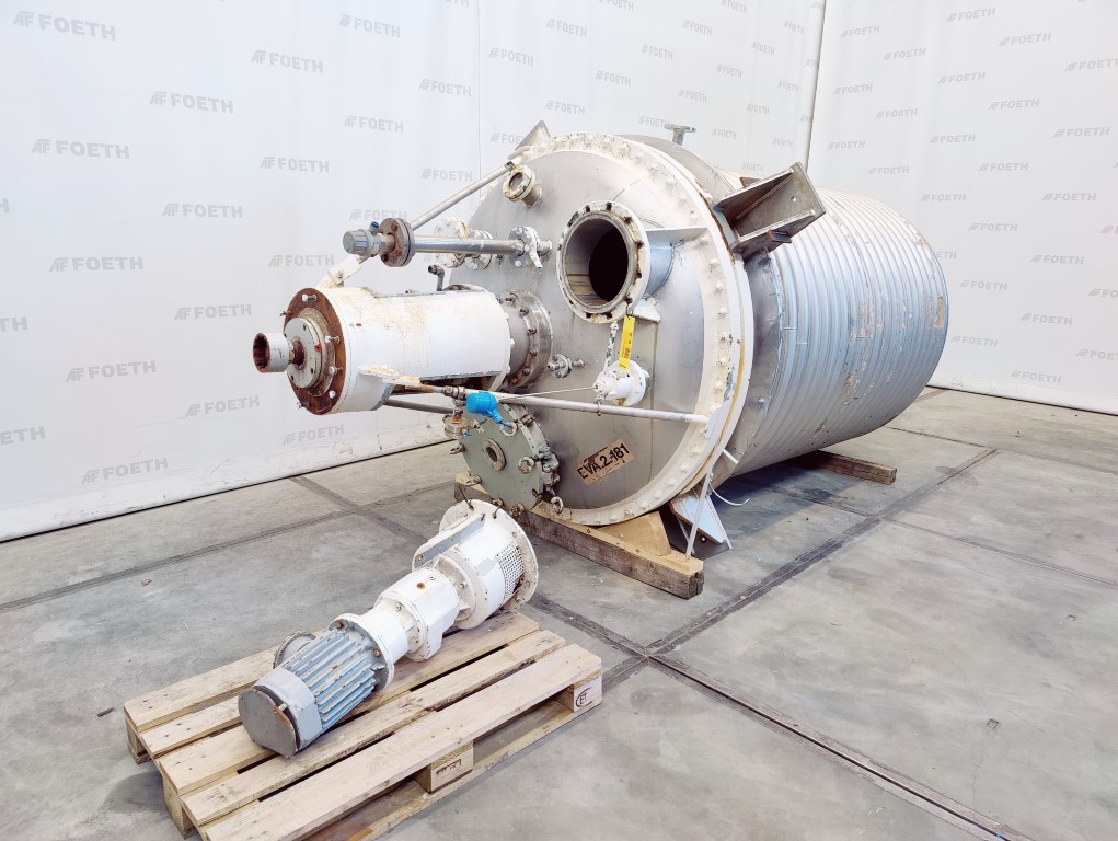General SKU345S768 HerstellerHinke Tankbau GmbH (AT) Typ16.620 Ltr №8295 Baujahr2000 StandortBarneveld Pressure Betriebsdruck3.5 Bar Vakuum möglichcheck Betriebsdruck Doppelmantel9 Bar Doppelmantel vakuum möglichcheck Haupteigenschaften MaterialEdelstahl Inhalt13000 Ltr. Motor30 KW Spezifizierte Eigenschaften - Stainless Steel Reactor Reaktorcheck Inhalt13.000 Ltr (max.: 16.620 Ltr) Kesselabmessungendia. 2400x4000 mm Klöpperbodencheck Klöpper Obenseitecheck MannlochDN600 ObenanschlüsseDN200, DN150, DN100, DN80, DN50 AuslaufDN80 Mit Aussenheizspiral(447+57 Ltr) Max. Temperatur-25/200 °C Mit Paddelrührwerkcheck (SDR 45-10 S) Motor30,0 kW, 400/690 Volt (EEx ...
