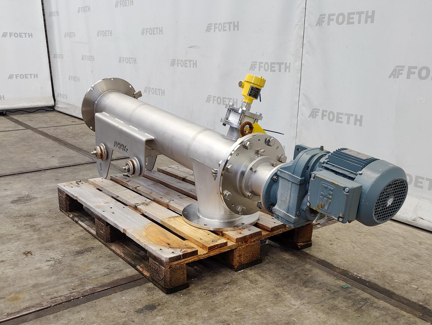 General SKU292T670 HerstellerVan Tongeren kennemer BV TypZ43430 Masch.No.T4404 Baujahr2015 Haupteigenschaften Motor3 KW Länge7000 mm Einlass durchm.430 mm Spezifizierte Eigenschaften - Horizontale Förderschnecke MaterialEdelstahl 1.4301 (304), Edelstahl 1.4401 (316) Horizontale Förderschneckecheck Rohren-Modelcheck Durchmesser420 mm Länge7000 mm Wellendurchmesser260 mm Steigung200 mm Einlaufdia. 430 mm Auslaufdia. 221 mm Max. Temperatur100 °C Motor3 kW 219-241/380-420 Volt (Ex) Höhe zwischen Ein-und Auslauf5890 mm Information StandortBarneveld Platzbedarf0,7x8,9 m Totalhöhe0,9 m CEcheck ATEX konformecheck Was Sie von Maschinen von Foeth erwarten können: - ...