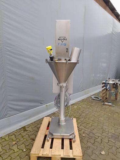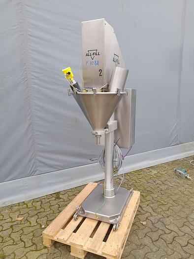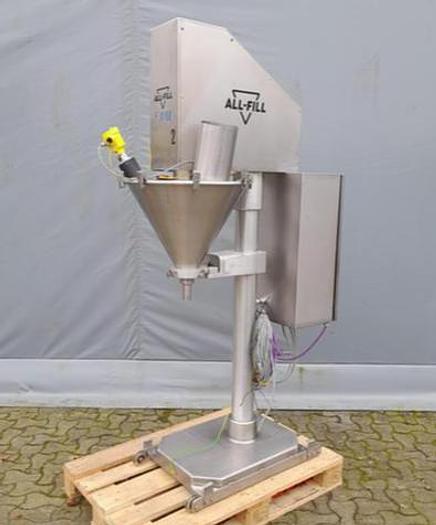 Best.-Nr.: F1088, Material: Edelstahl AISI 304, Auf Lager: Ja, Menge auf Lager: 1 Stk., Artikel: Schneckenfüller, Stehend: Auf einem Fuß, Gesamthöhe: 2200 mm., Motor: 400 Volt, Theoretische Kapazität: Geschätzte 25 Dosierung/Minute, abhängig von Volumen und Produkt, Dosierung: Über Timer, Schraube: D 33 mm., Hersteller: All-Fill, Modell: S10, Jahr: 2011, Dokumentation: Ja
