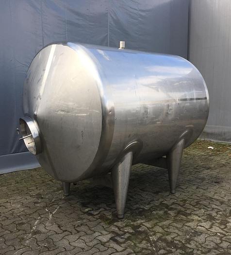 3.200 Liter, Best.-Nr.: T3964, Liter: 3.200, Material: Edelstahl AISI 304, Auf Lager: Ja, Menge auf Lager: 1 Stk., Artikel: Tank, Liegend: 4 Stk. Beine, Endböden: konisch, Doppelmantel: Nein, Isoliert: Nein, Rührwerk: Nein, Innendurchmesser: 1500 mm., Abmessungen: L 2250 mm., Gesamthöhe: 1900 mm.