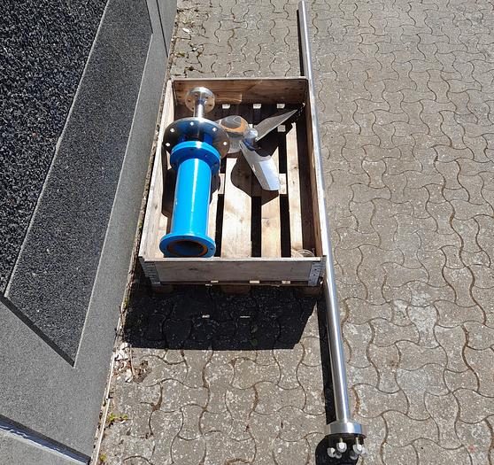 Best.-Nr.: R1154, Material: Edelstahl AISI 304, Propellergröße: D 720 mm., Menge auf Lager: 1 Stk., Artikel: Rührwerk, Auf Lager: Ja, Rührwerkstyp: Propeller, Wellenlänge: 3040 mm., Wellendurchmesser: 60 mm.