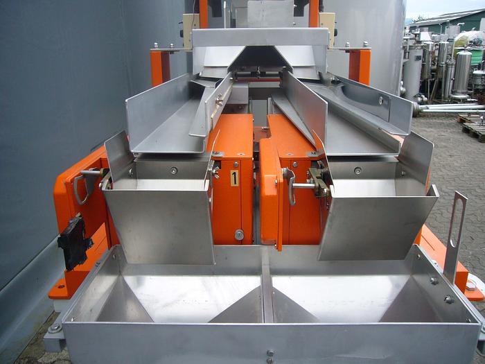 Best.-Nr.: F923, Vibratorwaage, Edelstahl, Engelhardt Typ AW120/A.DSP-2., Variable Drehzahl., 2-bahnig., Dosierung 0-1000 g., 10 g. Intervall, Material: Edelstahl AISI 304, Dosierung: 0-1000 g.