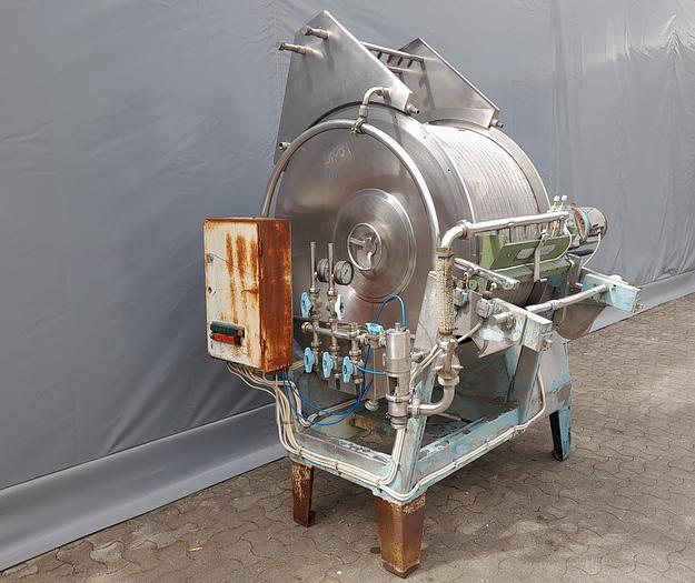 Best.-Nr.: SF059, Vakuum-Trommelfilter, Edelstahl, Alfa Laval 2,08 m2 Fläche, 1200 x L 600 mm., 1,5 kW Getriebemotor, Einstellbare Drehzahl 16-144 U/min., 380 Volt, Der Filter muss vor dem Gebrauch überholt werden., Material: Edelstahl AISI 304
