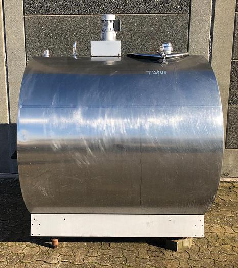 1.600 Liter, Best.-Nr.: T3800, Tank, Edelstahl,, auf Füßen liegend., Doppelmantel., Isolierte, äußere vollverschweißte Edelstahlverkleidung,, Tankdeckel oben., Waschflügel oben,, Rührwerk von oben., 1250 mm., Liter: 1.600, Material: Edelstahl AISI 304