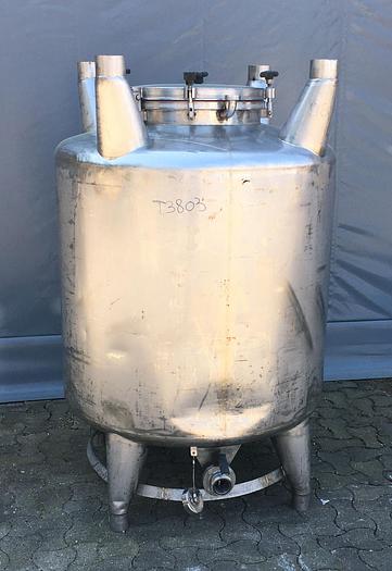 600 Liter, Best.-Nr.: T3803, Liter: 600, Material: Edelstahl AISI 304, Auf Lager: Ja, Menge auf Lager: 5 Stk., Artikel: Transporttank, Stehend: 4 Stk. Anzahl der Füße, Oben: Konisch, Unten: Konisch, Tankabdeckung: Oben, 425 mm., Innendurchmesser: 950 mm., Gesamthöhe: 1500 mm., Andere: Stapelbar