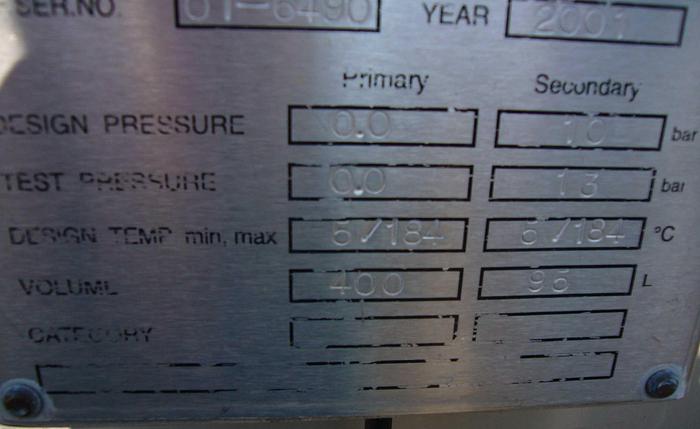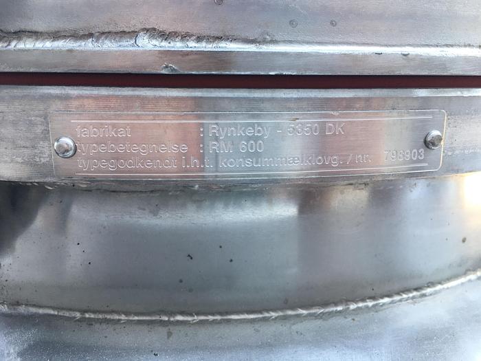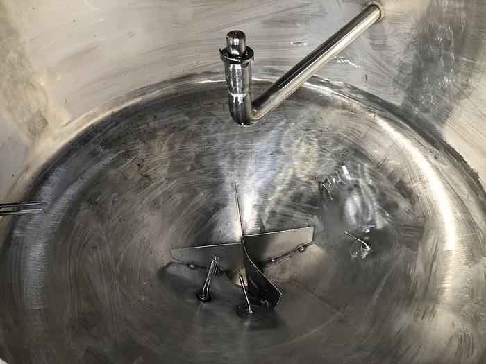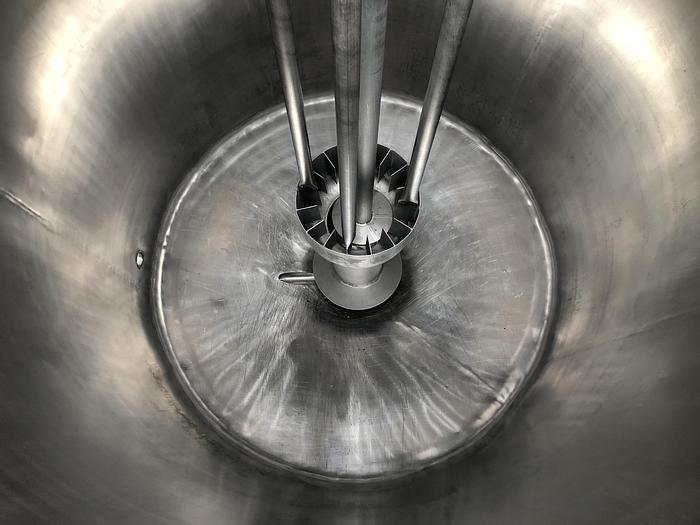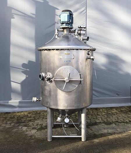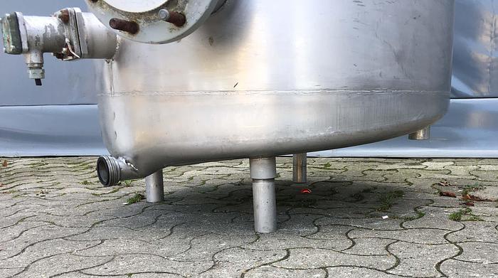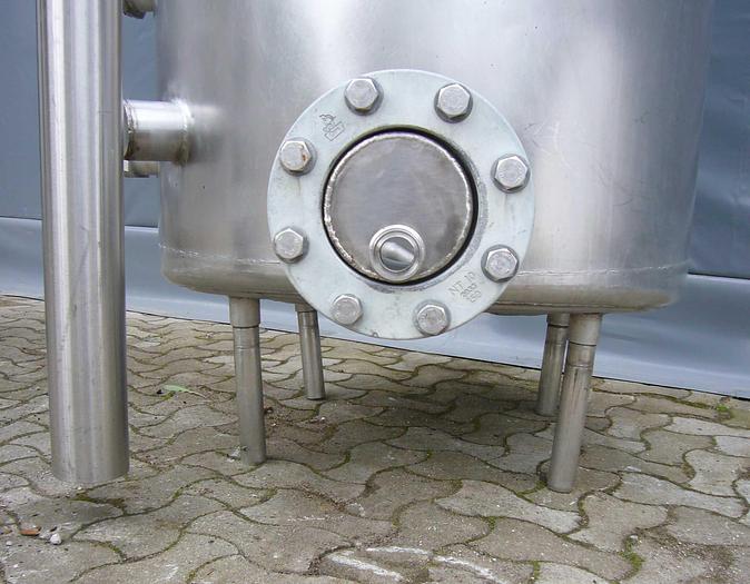 800 Liter, Best.-Nr.: T3793, Liter: 800, Material: Edelstahl AISI 316, Auf Lager: Ja, Menge auf Lager: 1 Stk., Artikel: Vakuum-Entlüftungsbehälter, Stehend: 4 Stk. Füße, Oben: Konisch, Bolzen, Unten: Konisch, Tankdeckel: Seitlich, 460 mm., Rührwerk: Ja, Motor: 4,0 kW - 400/660 Volt - 1435 U/min., CIP: 3 Stk., Innendurchmesser: 1000 mm., Gesamthöhe: 2300 mm., Hersteller: Alfa Laval, Modell/Typ: RV-1-800
