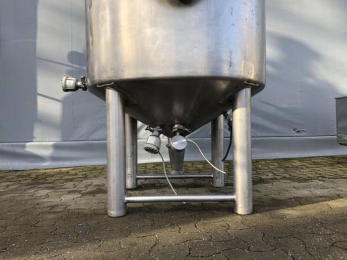 4.000 Liter, Best.-Nr.: T3788, Tank, Edelstahl,, oben geschlossen, auf Füßen stehend., Konischer Ober- und Boden,, Tankdeckel oben., Homogenisierrührwerk von oben,, 1600 mm., Liter: 4.000, Material: Edelstahl AISI 304