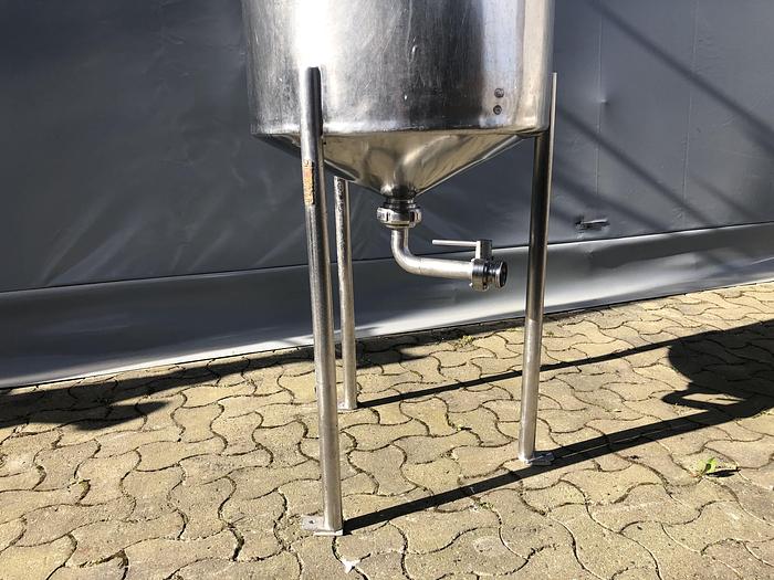 270 Liter, Best.-Nr.: T3792, Liter: 270, Material: Edelstahl AISI 304, Auf Lager: Ja, Menge auf Lager: 1 Stk., Artikel: Tank, Stehend: 3 Stk. Beine, Oberseite: Offen mit Verstärkungsring, Unterseite: Konisch, Innendurchmesser: 600 mm., Gesamthöhe: 1660 mm.