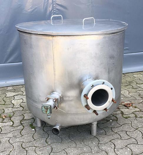450 Liter, Best.-Nr.: T2931, Liter: 450, Material: Edelstahl AISI 304, Auf Lager: Ja, Menge auf Lager: 1 Stk., Artikel: Tank, Stehend: 4 Stk. Anzahl der Beine, Platte: Offen mit Verstärkungsring und Deckel, Innendurchmesser: 900 mm., Gesamthöhe: 900 mm.