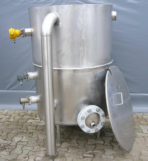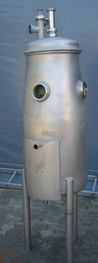 175 Liter, Best.-Nr.: T2897, Liter: 175, Material: Edelstahl AISI 316, Auf Lager: Ja, Menge auf Lager: 1 Stk., Artikel: Vakuumtank, Stehend: Auf 3 Stk. Beine, Doppelmantel: Zyklon mit Doppelmantel, Innendurchmesser: 500 mm., Hersteller: Alfa Laval, Modell/Typ: DC500, Sonstiges: Waschkugel oben und Kondensator oben