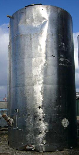 53.000 Liter, Best.-Nr.: T2882, Tank, Edelstahl,, oben geschlossen, stehend für Fundament., Konischer Deckel,, Tankdeckel oben., Flansch für Rührwerk in der Seite,, flach abfallender Boden., 3350 mm., Liter: 53.000, Material: Edelstahl AISI 304