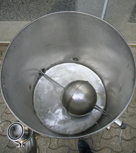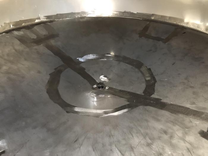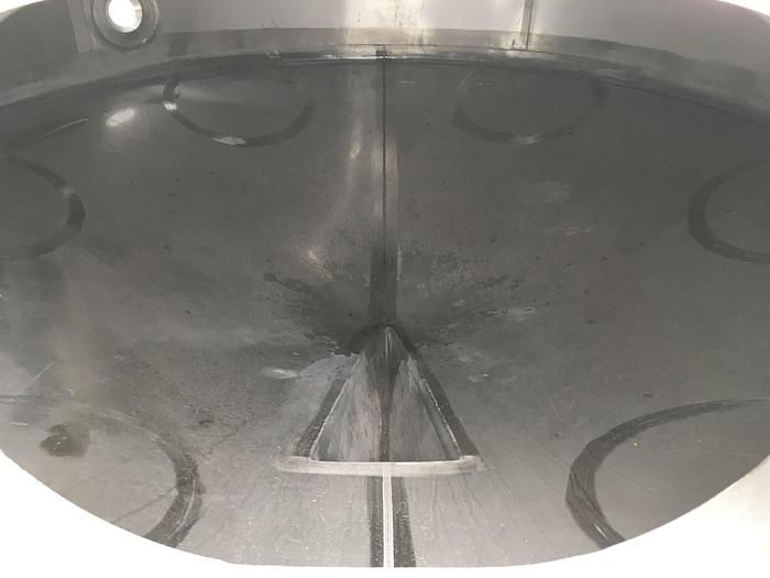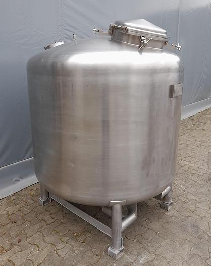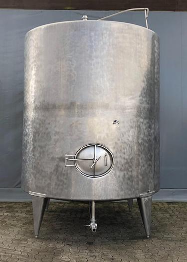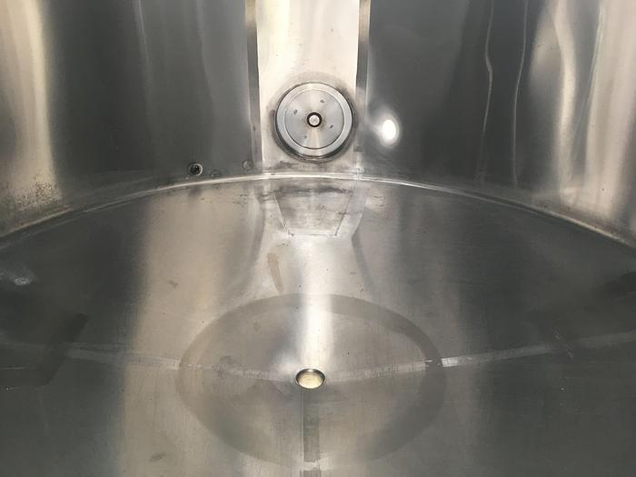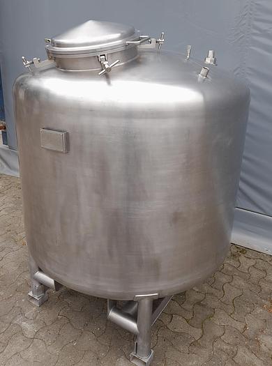 2.000 Liter, Best.-Nr.: T2545, Tank, Edelstahl,, oben geschlossen, auf Füßen stehend., Ober- und Unterseite gewölbt,, Tankdeckel oben., Rührwerk von oben,, Rotojet 3,6 kW., 1600 mm., Liter: 2.000, Material: Edelstahl AISI 304